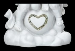 Schenken Sie Ihrer Liebsten oder Ihrem Liebsten diese zauberhaften, kĂŒssenden Engel aus liebevoll handbemaltem Kunststein (Polyresin). Die bezaubernde Ausstrahlung der 23,5 cm hohen, 15 cm breiten und 11 cm tiefen Engelfigur wird durch das mit Schmucksteinen verzierte Herz noch verstĂ€rkt. Die sĂŒĂen Engel sind nicht nur ein liebevolles Geschenk, sie sind auch auf der Hochzeitstafel ein romantischer Blickfang.Â