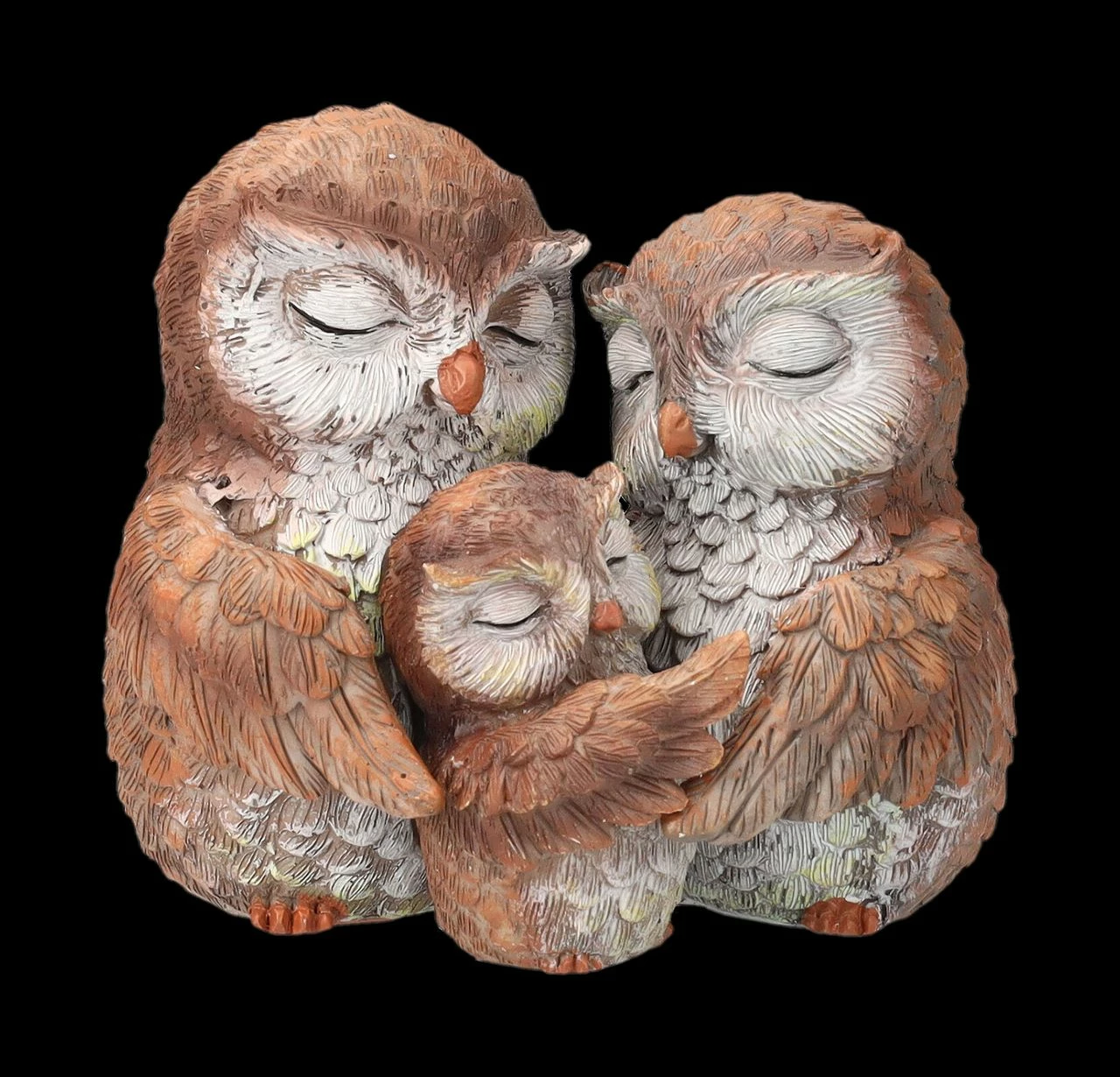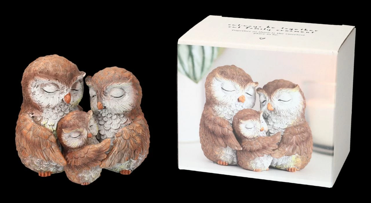 Einen absolut liebevolles Bild gibt diese niedliche Eulen-Familie ab. Zärtlich und schützend schließen die Eulen-Eltern ihre Flügel um ihr Junges. ‚Owl-ways Be Together‘ nennt sich diese putzige, 9 cm hohe, 10 cm breite und 7 cm tiefe Eulenfigur-Familie aus handbemaltem Kunststein (Polyresin). Besser kann man das gar nicht beschreiben. Die niedliche Eulen-Familie ist auch ein perfektes Geschenk für eine junge Familie und kommt inklusive Geschenkkarton.