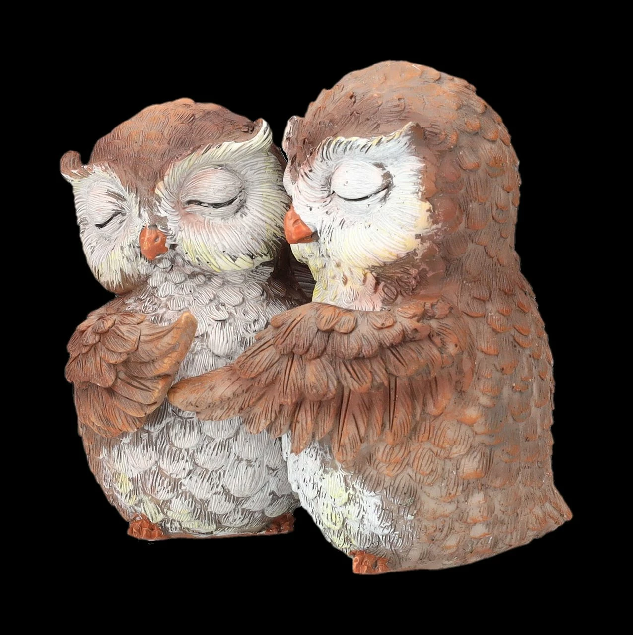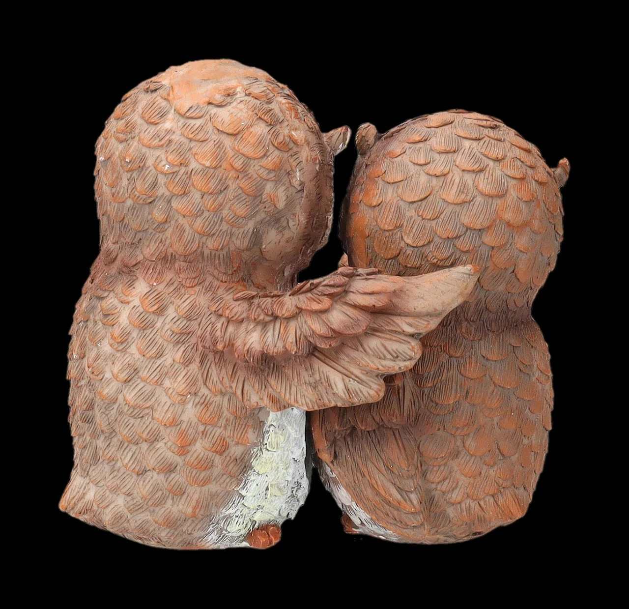 ‚Birds of a Feather‘ – als sinnige Beschreibung fĂŒr ‚Leute vom gleichen Schlag‘ ist die lustige Bezeichnung fĂŒr dieses Eulen-Liebespaar. Mit geschlossenen Augen scheinen sie sich zĂ€rtlich mit ihren FlĂŒgeln zu streicheln. Das putzige Eulen-Liebespaar ist 9 cm hoch, 9 cm breit und 7,5 cm tief und wurde aus liebevoll handbemaltem Kunststein (Polyresin) gefertigt. Die Eulen-Figur ist nicht nur fĂŒr Eulen-Sammler ein perfektes Geschenk, sondern auch fĂŒr alle frisch verliebten und kommt inklusive Geschenkkarton.