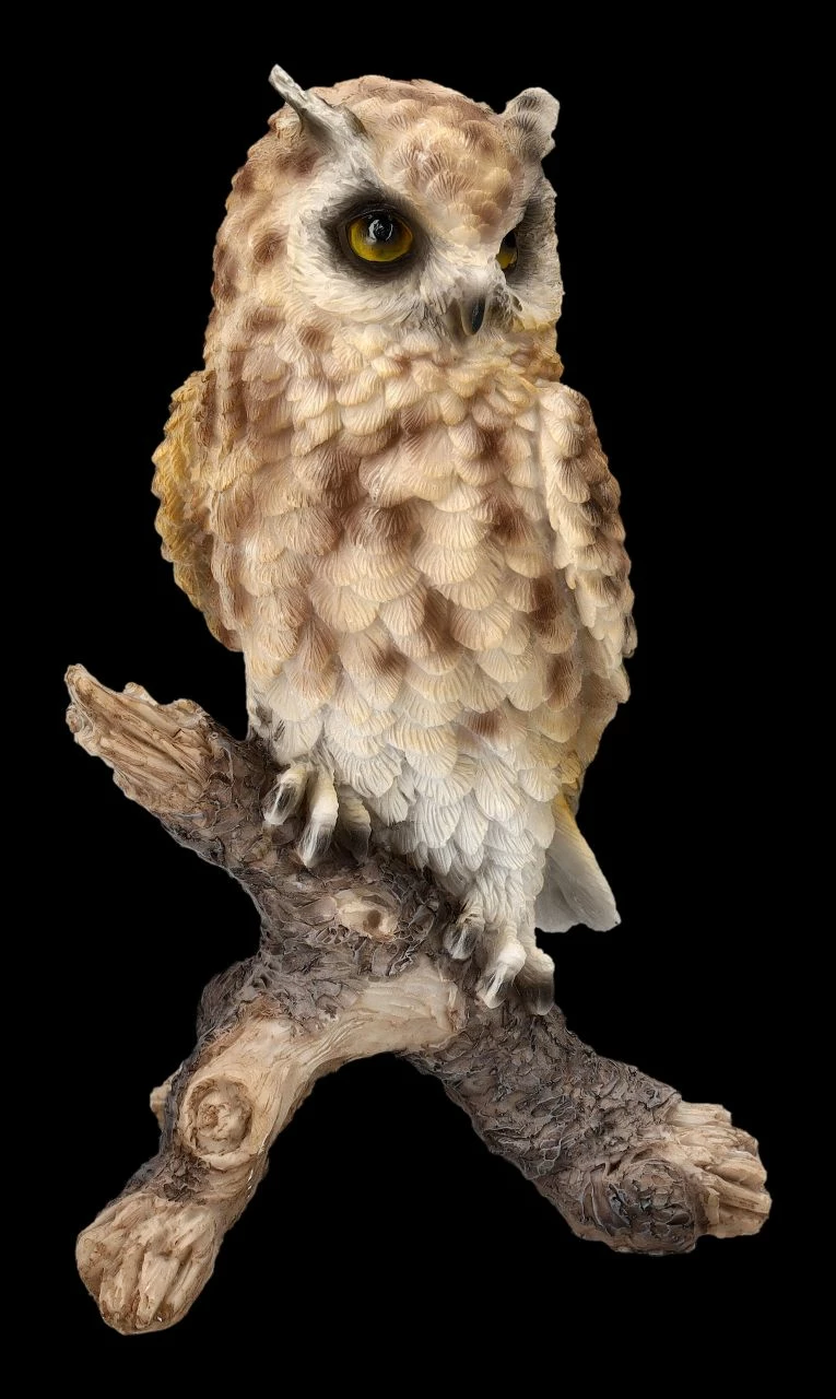 Aufmerksam und mit wachen Augen scheint diese wunderbare Eule dem Betrachter entgegenzusehen. Die 20 cm hohe, 12 cm breite und 10 cm tiefe auf einem Ast sitzende Eule wurde detailreich aus Kunststein (Polyresin) gefertigt und liebevoll handbemalt. Eulen galten bereits im Altertum als weise und intelligent und kommen in zahlreichen Mythen und Sagen vor. Von manchen wurde sie als nachtaktives Tier sogar gefürchtet, aber spätestens seit den Geschichten um die Eule Hedwig wird sie bewundert und ist als schöne Deko ein perfektes Geschenk. Schenken Sie der auf dem Ast sitzenden Eule einen schönen Platz, an dem sie sofort entdeckt wird.. .