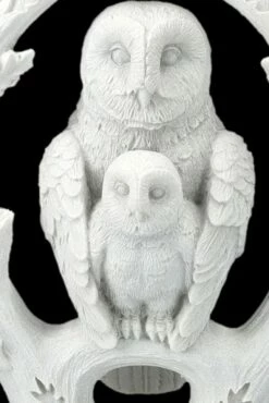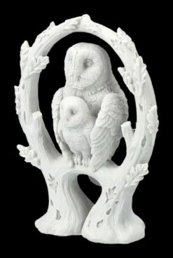 Liebevoll hält die Eulenmutter ihren Nachwuchs zwischen ihren Federn warm. Zwei Äste haben sich vereint und bilden einen Bogen über dieser zärtlichen Szene mit der Eulenmutter, die ihr Eulenbaby umarmt.. ‚Embrace‘ heißt die handbemalte und wunderbar detailreiche Eulen-Figur aus Kunststein (Polyresin), die durch die weiße Farbe sehr zurückhaltend und edel wirkt. Die 10,5 cm hohe, 8 cm breite und 4 cm tiefe Eulen-Figur ist nicht nur sehr dekorativ, sie ist auch ein wunderbares Geschenk für eine junge Familie und auch für alle Eulen-Freunde.