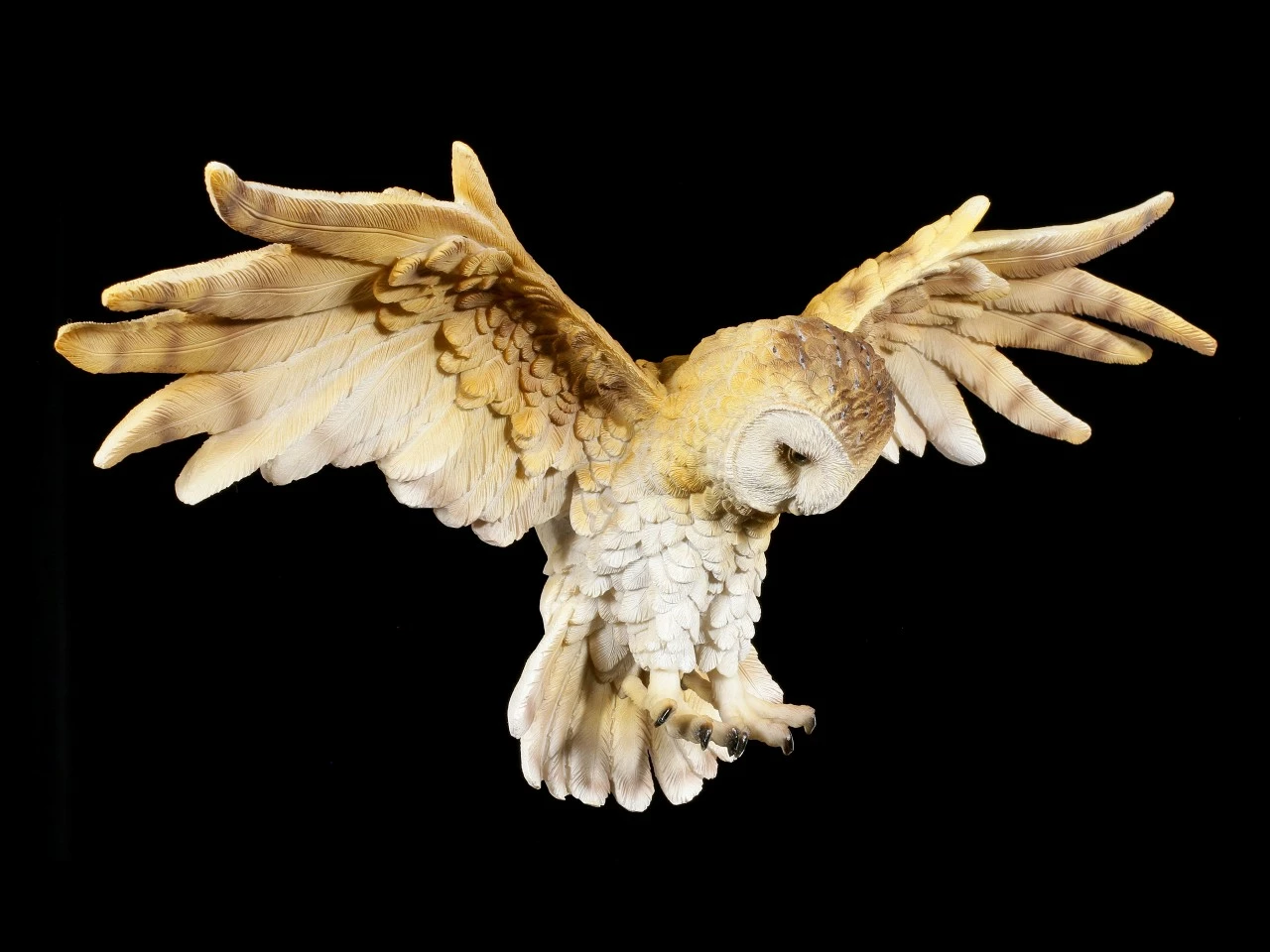 Die Eule ist mitten im Flügelschlag erstarrt – hat sie eine Beute entdeckt? Das handbemalte Eulen Wandrelief aus Kunststein ist ein Highlight an Ihrer Wand. Die Figur Wisdom Flight wirkt unglaublich lebensecht und ist sehr detailgetreu verarbeitet.