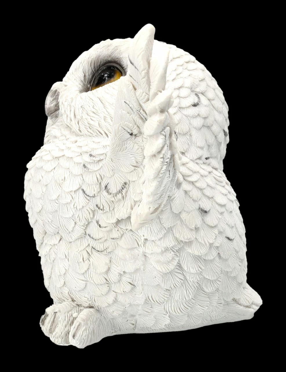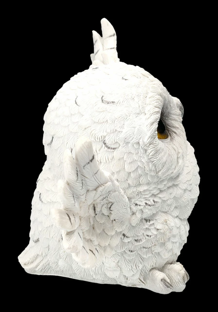 „Bitte kuscheln“ – scheint die entzückende kleine Schneeeule jedem Betrachter sagen zu wollen. Und wer könnte da wohl widerstehen? Die kleine Eule Snowy Delight wurde liebevoll aus handbemaltem Kunststein (Polyresin) gefertigt. Mit ihrer Höhe von 13,5 cm, der Breite von 21 cm und der Tiefe von 10 cm ist sie eine richtig niedliche Deko. Snowy Delight ist aber auch ein tolles Geschenk für alle Eulen-Freunde.