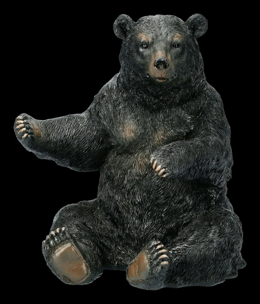 Der große Schwarzbär aus sorgfältig handbemaltem Kunststein (Polyresin) hält die Weinflasche sicher in seinen Pranken. Mit seiner Höhe von 19 cm, der Breite von 17 cm und der Tiefe von 16 cm ist der große Schwarzbär ein ungewöhnliches, aber dekoratives Accessoire in Ihrem Weinregal oder auf dem Esstisch. Zu einer guten Flasche Wein ist der Flaschenhalter aber auch das perfekte Geschenk.