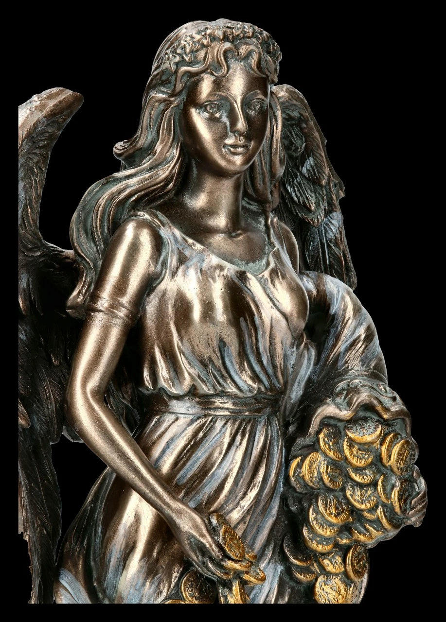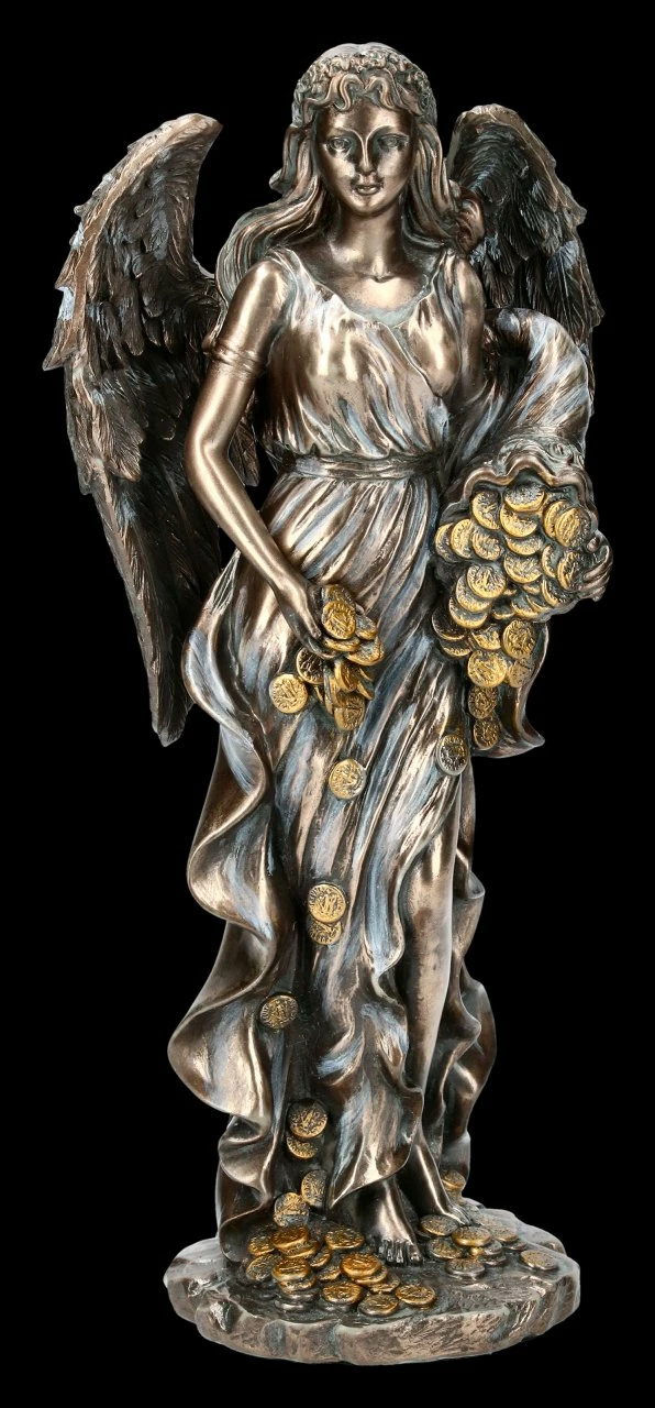 Die Göttin Fortuna mit ihrem Füllhorn als Attribut ist die Schicksals- und Glücksgöttin. Sie verteilt ihre Gaben aus dem Füllhorn: gutes wie schlechtes Schicksal, Glück und Unglück ohne ansehen der Person. Für diesen Engel sind alle Menschen gleich. Dieser Engel wird ihnen Glück und Frieden bringen.