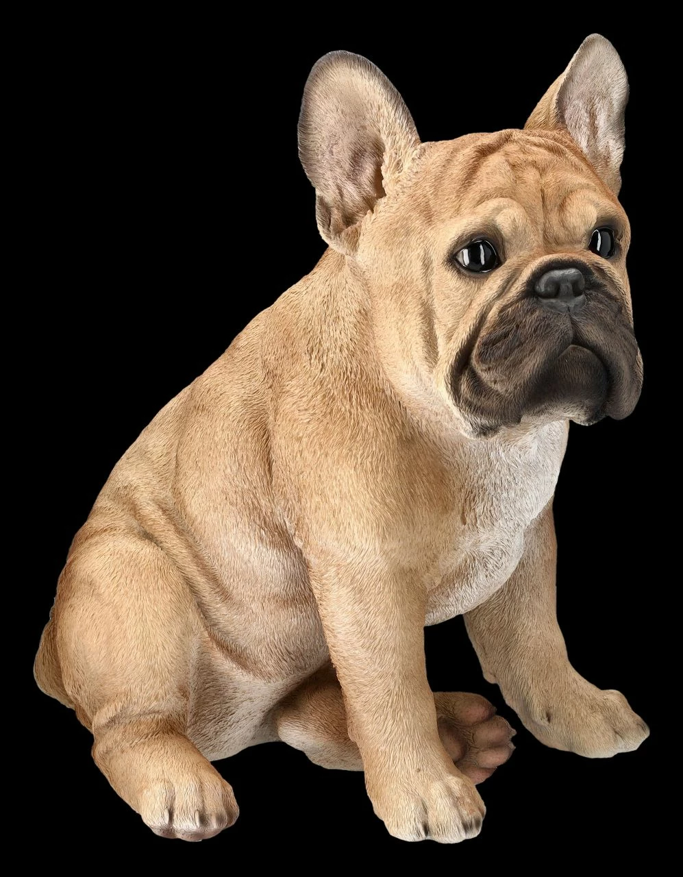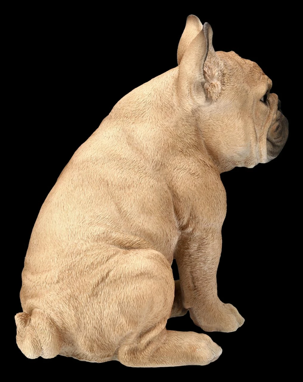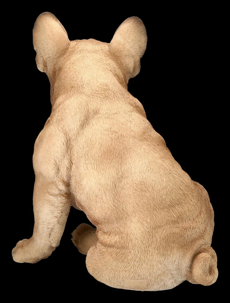 Wunderbar realistisch und detailreich gestaltet ist diese sitzende Figur einer Französischen Bulldogge von Hotant. Der herrlich griesgrämige Gesichtsausdruck kommt bei dieser Figur wunderbar zur Geltung. Auch wenn man es dieser Hunderasse nicht so ohne weiteres ansieht, sie sind wegen ihres fröhlichen und verspielten Wesen sehr beliebt und eigentlich regelrechte Kampfschmuser. Jeder Hundebesitzer weiß, dass sie sich sehr gerne ein Bett oder Sofa als Schlafplatz aussuchen, aber die Gefahr besteht bei dieser Französischen Bulldogge nicht, auch wenn diese Figur absolut realistisch aussieht. Sie ist einfach fantastisch aus hochwertigem Kunststein (Polyresin) gefertigt und mit viel Liebe handbemalt. Mit der Höhe von 40 cm, der Breite von 35 cm und der Tiefe von 26 cm ist die Figur einfach perfekt einem echten Hund nachempfunden. Wer die Französische Bulldogge kennt und diese Figur sieht, wird sie vermutlich sofort streicheln wollen. Die Figur von Hotant ist nicht nur eine tolle Deko, sie ist auch eine hochwertige und fantastische Trophäe für jeden Züchter, Verein oder Zuchtverband und natürlich auch ein perfektes Geschenk für alle Hundefreunde. Wenn aber der treue Begleiter seinen Menschen eines Tages zurück lässt, wird diese Figur, neben der Urne, aufgestellt immer an ihn erinnern.