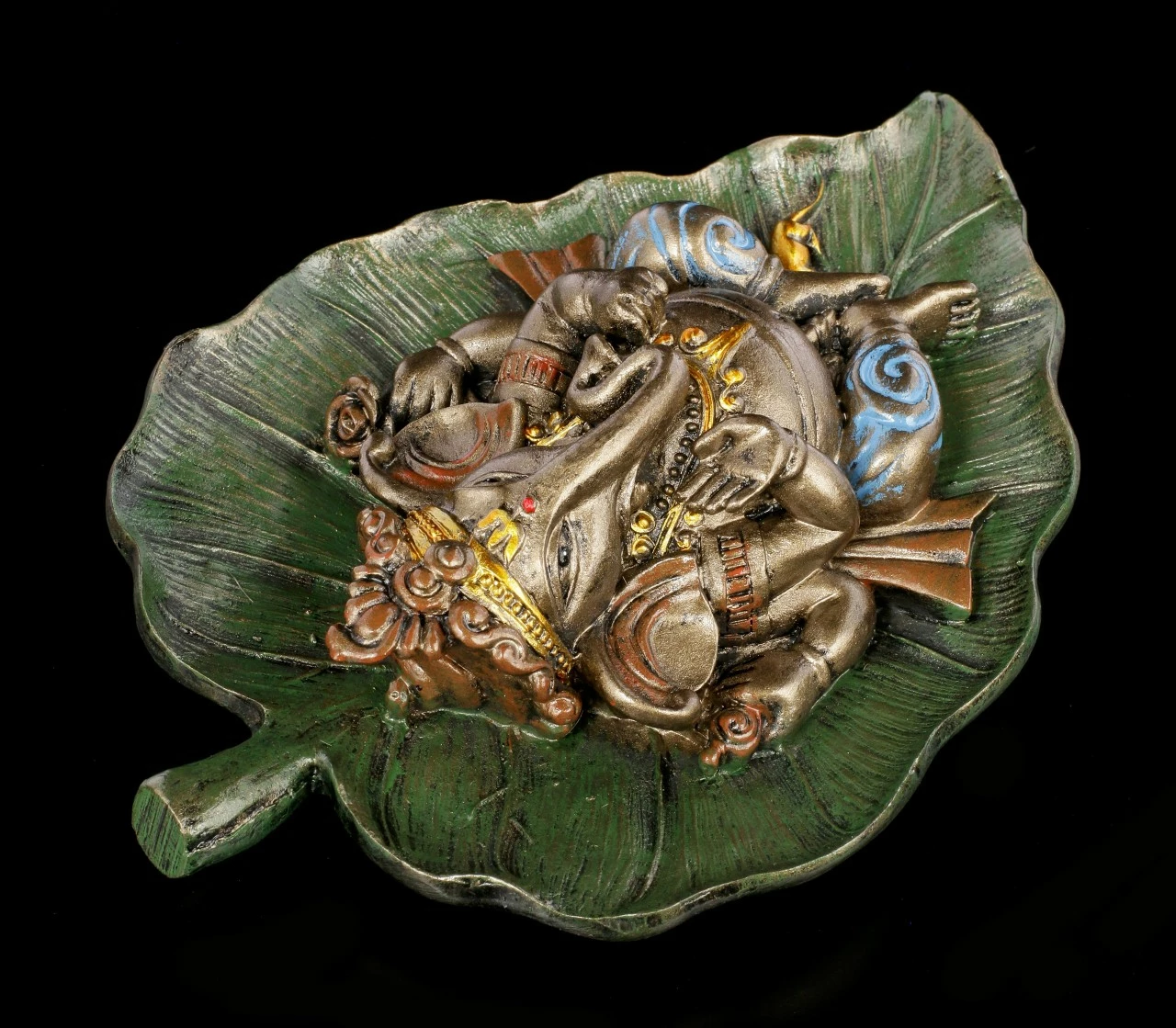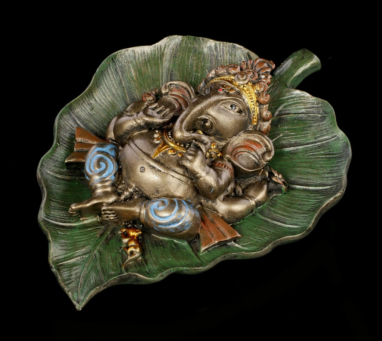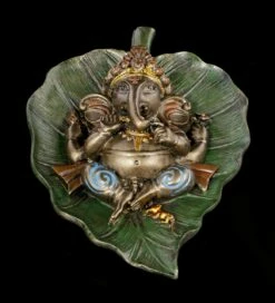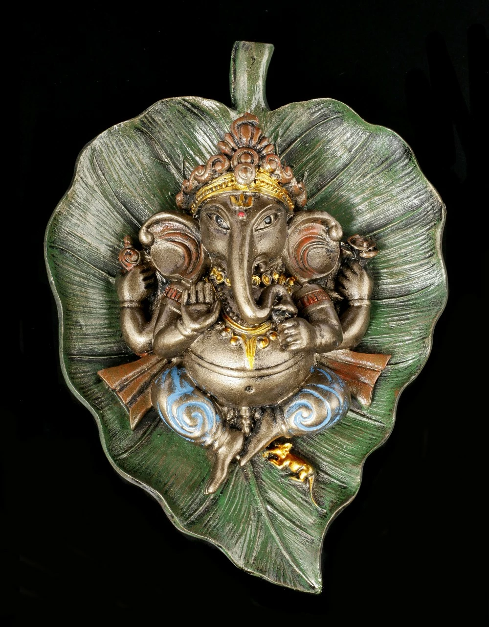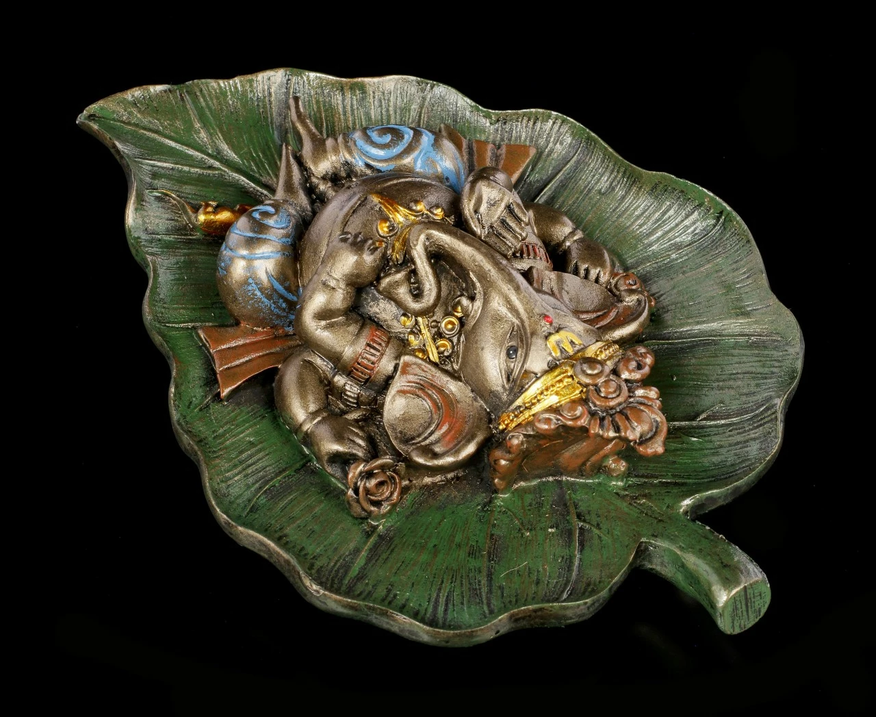 Bronzierte Ganesha Figur auf Blatt der Pappelfeige