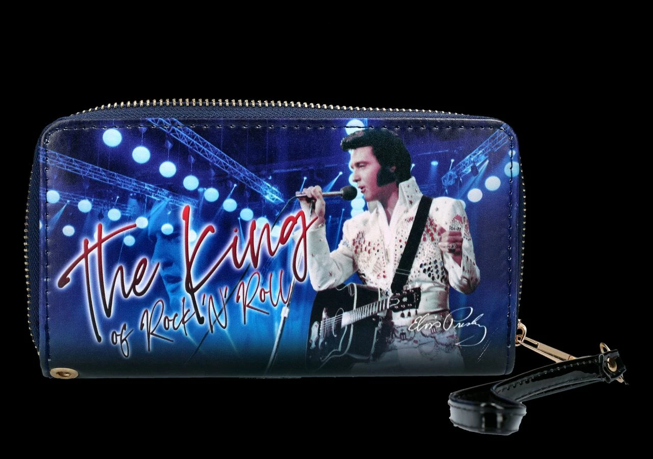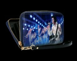 Auf einem Konzert vom King of Rock’n Roll – das wär’s doch gewesen, oder? Mit dieser coolen Geldbörse mit Elvis bei einem seiner berühmten Konzerte können Sie sich als Fan outen. Aus geprägten Kunstleder gefertigt, zeigt die Abbildung einen faszinierenden 3-D-Effekt. Die tolle Geldbörse hat eine Höhe von 10 cm, eine Breite von 19 cm und eine Tiefe von 2 cm. Hinter dem Hauptfach mit Reißverschluss verbergen sich u.a. Fächer für Visiten-/ Kreditkarten, 2 versteckte Einschubfächer und ein Reißverschlussfach für Kleingeld. Außerdem gibt es eine abnehmbare Armschlaufe. Diese Geldbörse mit The King of Rock and Roll ist ein großartiges Geschenk für alle Elvis Presley Fans.