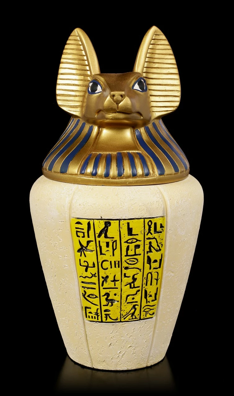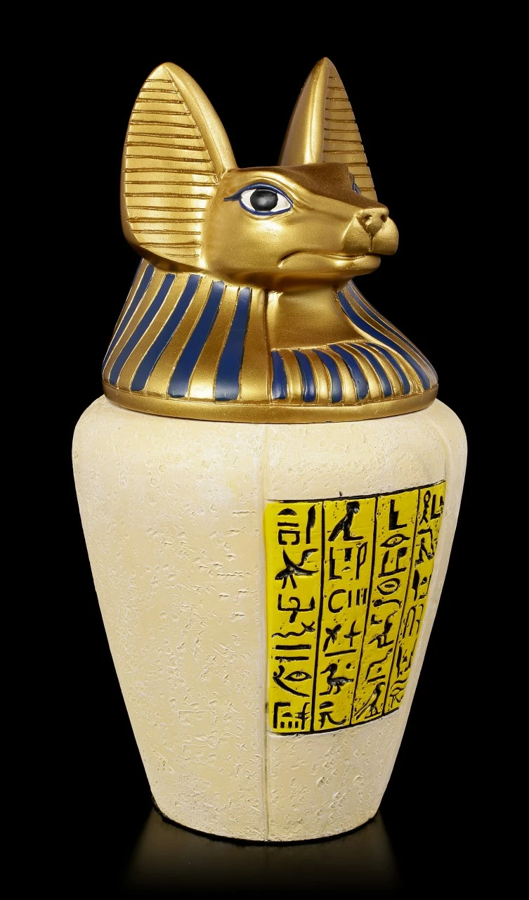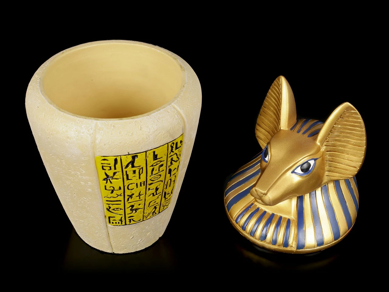 Die wunderschöne handbemalte Anubis Urne aus Kunststein (Polyresin) ist für jeden Ägypten Fan ein Must Have. Auch als letzte Ruhestätte für die Asche Ihres geliebten Haustieres ist die Urne perfekt geeignet.