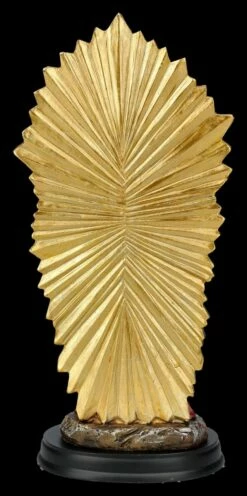 Bekleidet mit blauem Umhang über dem roten Gewand und mit goldener Krone steht die Madonna auf einem Podest mit dem Schriftzug ‚Our Lady of Perpetual Help‘., übersetzt also ‚ Unsere Dame der ewigen Hilfe‘. Auf dem Arm hält sie zärtlich das Jesus-Kind und neben ihrem Haupt fliegen zwei kleine Engel, die ihren blauen Schleier halten. Hinter der liebevoll von Hand bemalten Heiligen Figur reicht der goldene Strahlenkranz bis zum Boden. Die schöne ‚Madonna der immerwährenden Hilfe‘ ist detailreich aus Kunststein (Polyresin) gefertigt und 21 cm hoch, 10 cm breit und 7,5 cm tief. Ob auf dem privaten Altar, oder in der ‚Heiligen Ecke‘ in der ‚guten Stube‘, diese schöne und ikonenhaft farbenprächtige Madonna wird überall zum Mittelpunkt und ist daher auch ein wunderbares Geschenk.