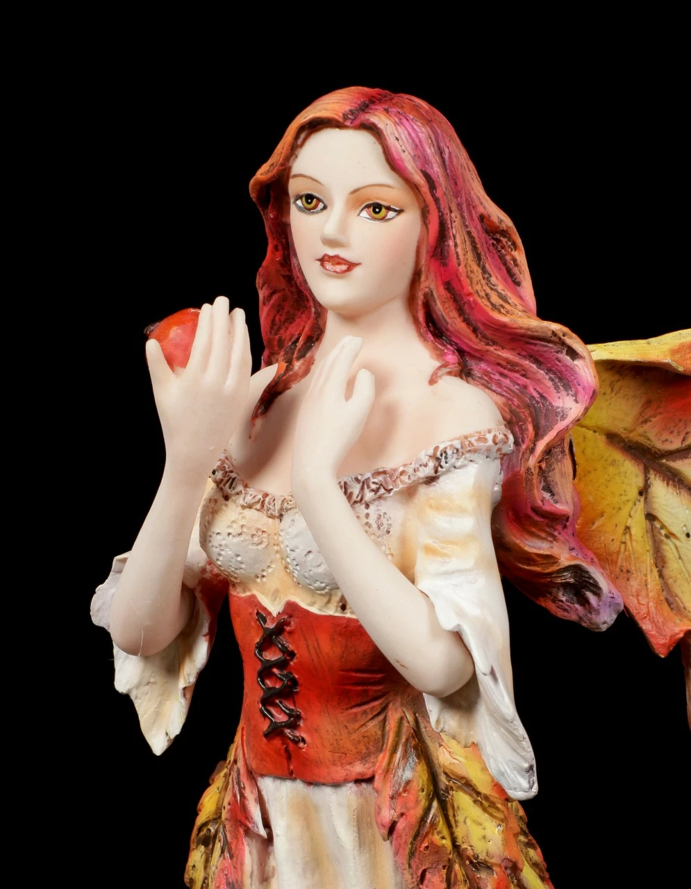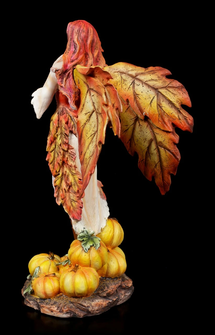 Auf einem Berg aus Kürbissen, hat sich die Herbst Elfe Sonya niedergelassen um einen Apfel zu essen. Die wundervolle handbemalte Figur aus Kunststein (Polyresin) sollte in keiner Sammlung fehlen, denn sie ist nicht nur im Herbst eine schöne Deko.