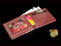 „Can´t help falling in love….“ haben wir als Ohrwurm seit wir diesen wundervollen geprägten Kunstleder Geldbeutel das erste Mal in den Händen hielten. Für jeden Elvis Fan ist die Geldbörse ein wunderbares Accessoire und alles Wichtige findet seinen Platz.