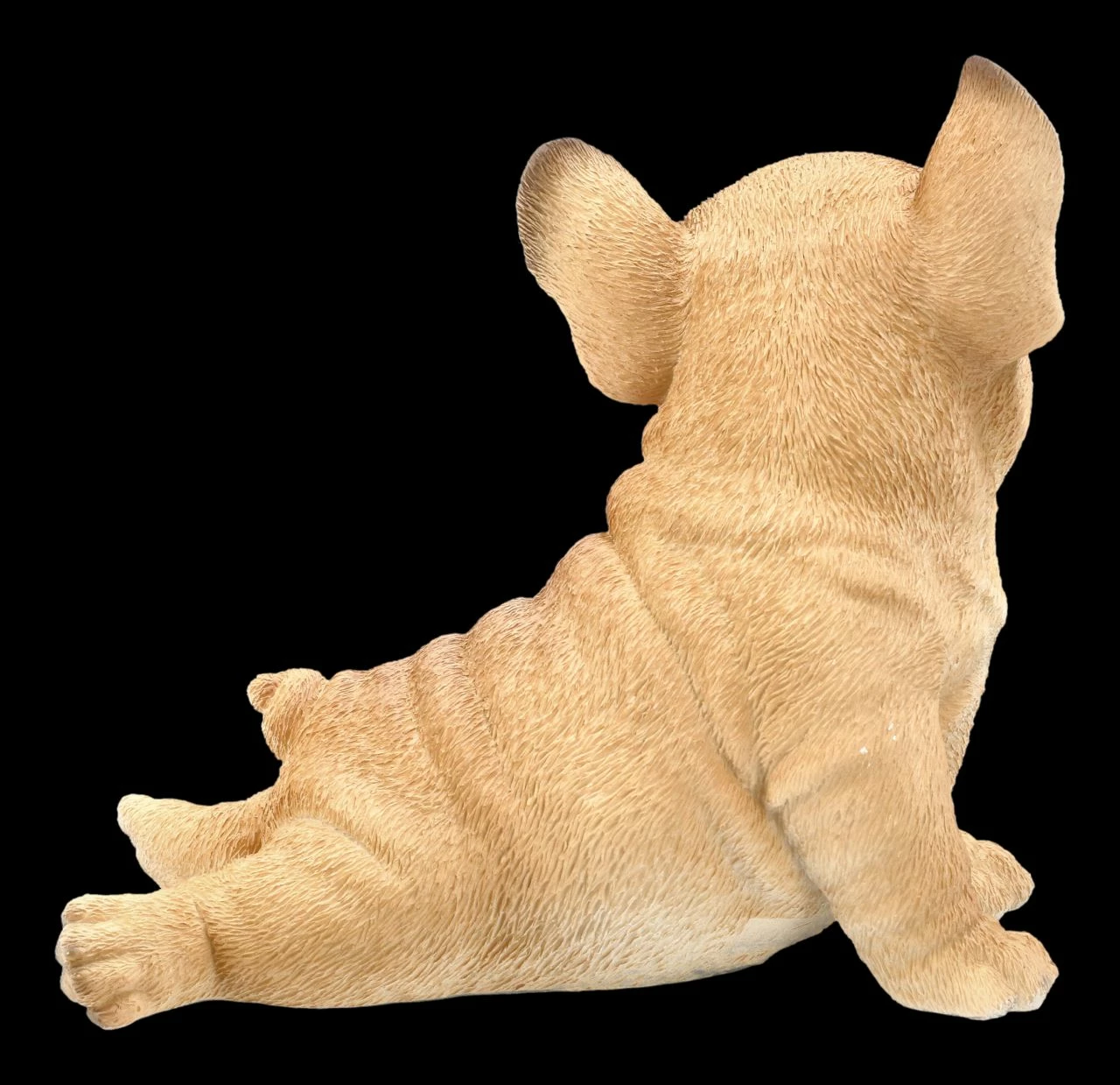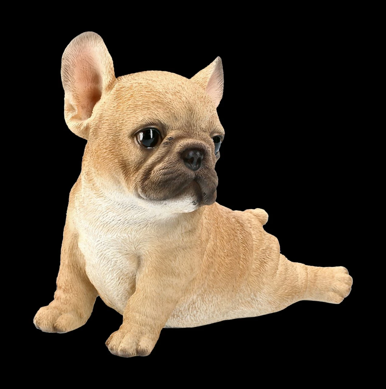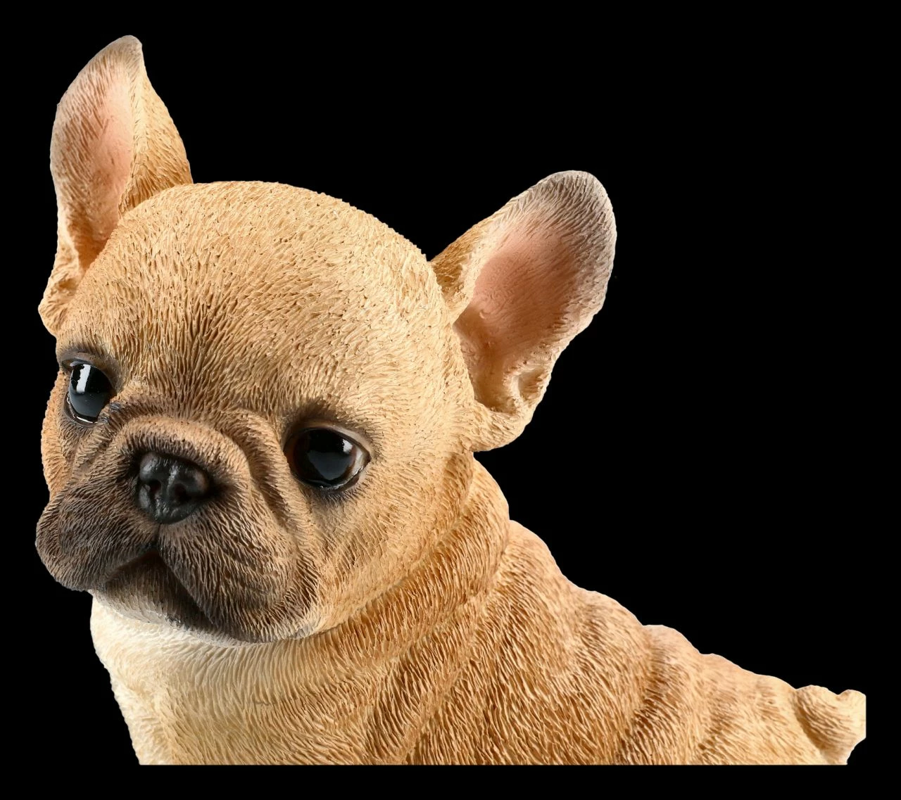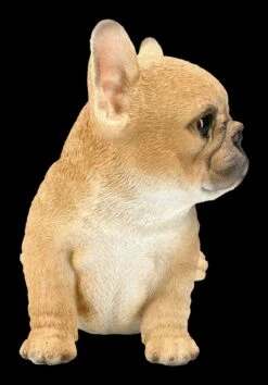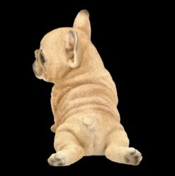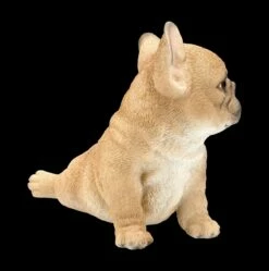 Treuherzig und frech fordert dieser süße Französische Bulldogge Welpe zum Spielen auf. Mit seinem sanften Hundeblick, den großen Ohren und der kurzen Nase sieht dieser Welpe aus sorgfältig und detailliert handbemaltem Kunststein doch zu niedlich aus. Er ist 15 cm hoch, 15,5 cm breit und 11,0 cm tief und freut sich auf ein warmes, kuscheliges Zuhause.
