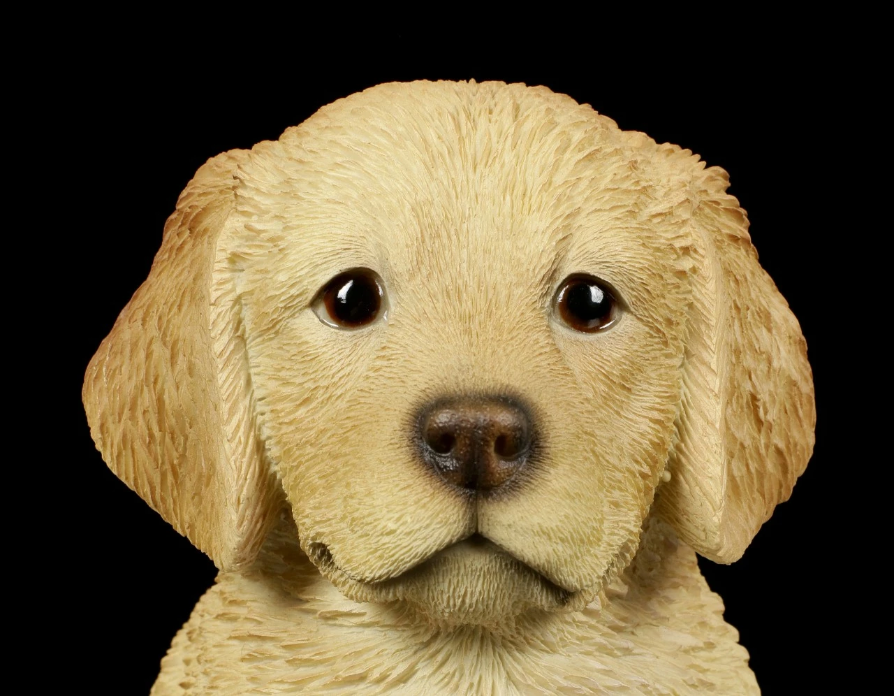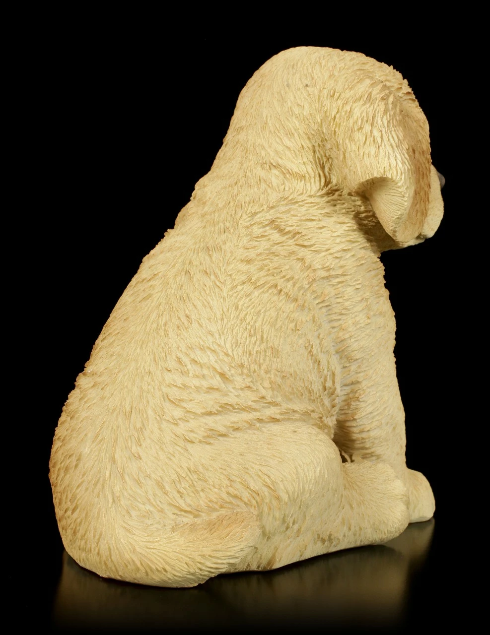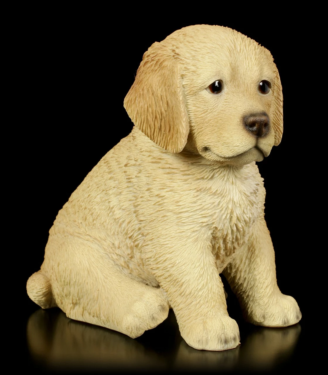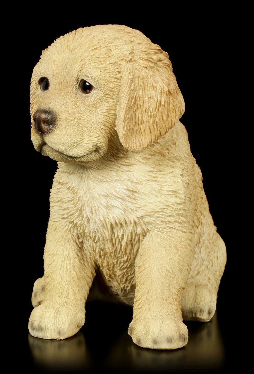 Ein kleiner Golden Retriever Welpe könnte ganz schnell bei Ihnen einziehen. Und stellen Sie sich vor, dieser hier ist stubenrein, macht keine Schuhe kaputt und bellt auch nie die GĂ€ste an. Die handbemalte Kunststein (Polyresin) Figur ist lebensecht gestaltet und wenn Sie in die groĂen Augen des Welpen sehen, werden Sie wissen, dass er zu Ihnen gehört.
