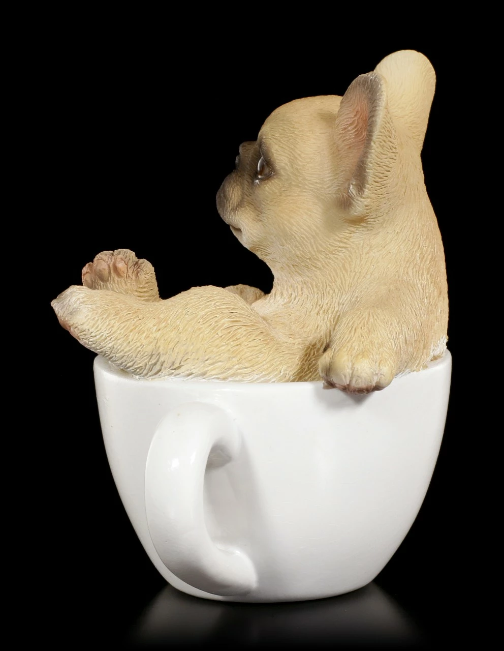 Der niedliche kleine Französische Bulldoggen Welpe wartet schon sehnsüchtig auf Sie! Die handbemalte Kunststein Figur eignet sich ganz wunderbar als Geschenk an einen Hunde Fan. Oder möchten Sie ihm, oder einem seiner Freunde, ein neues zu Hause geben?