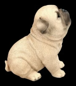 Dass ein Mops ganz genau weiß, wie er mit Charme-Einsatz seinen Menschen erziehen kann, sieht man diesem süßen Welpen aus detailreich handbemaltem Kunststein (Polyresin) auch an. Was sagte schon Loriot: ‚Ein Leben ohne Mops ist möglich, aber sinnlos‘. Dieser süße Welpe mit seinem knautschigen Gesicht und treuherzigen Blick ist 14,5 cm hoch, 11,0 cm breit und 14,0 cm tief.und ein tolles Geschenk für alle, die diesem Blick einfach nicht widerstehen können.