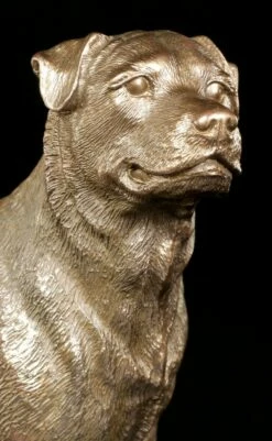 Aufmerksam steht der Rottweiler dar und wartet auf seinen menschlichen Freund. Die bronzierte Figur wurde perfekt nach dem freundlichen und gehorsamen Rottweilers abgebildet. Ein schönes Geschenk an einen Rottweiler Freund.