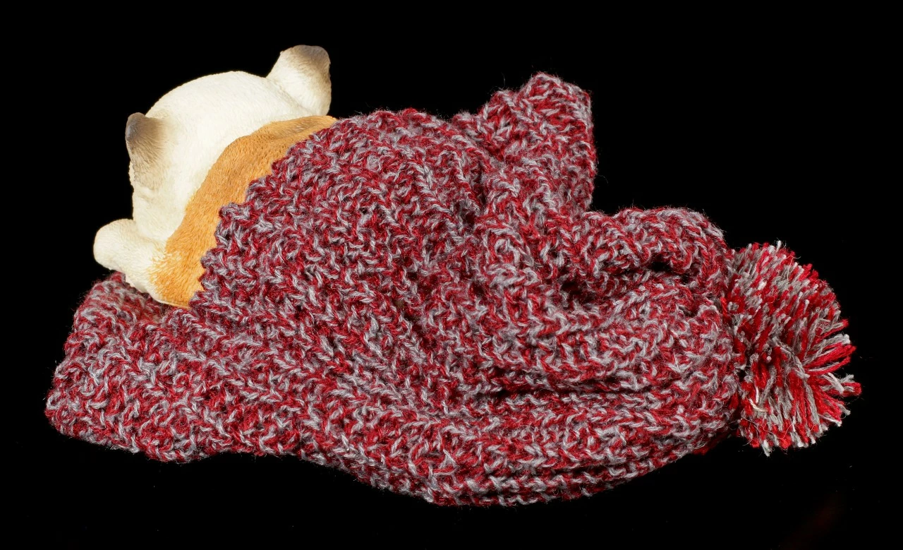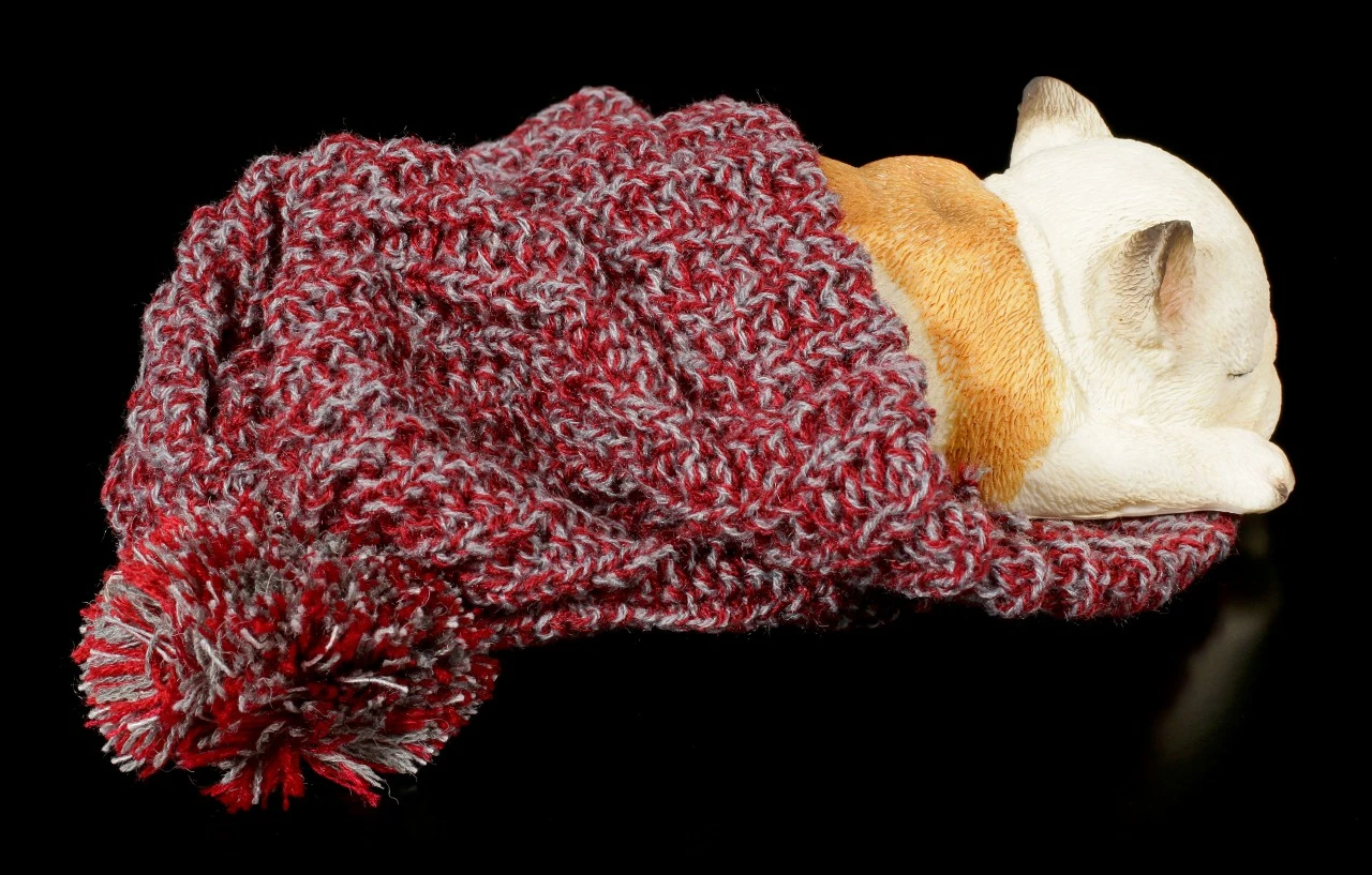 Sind Sie Hunde Fan oder sind Sie auf der Suche nach dem perfekten Geschenk für einen Hundebesitzer? Dann ist diese handbemalte Kunststein Figur genau das Richtige! Der süße Kleine hat sich in die Strickmütze gekuschelt und ist tief und fest eingeschlafen.
