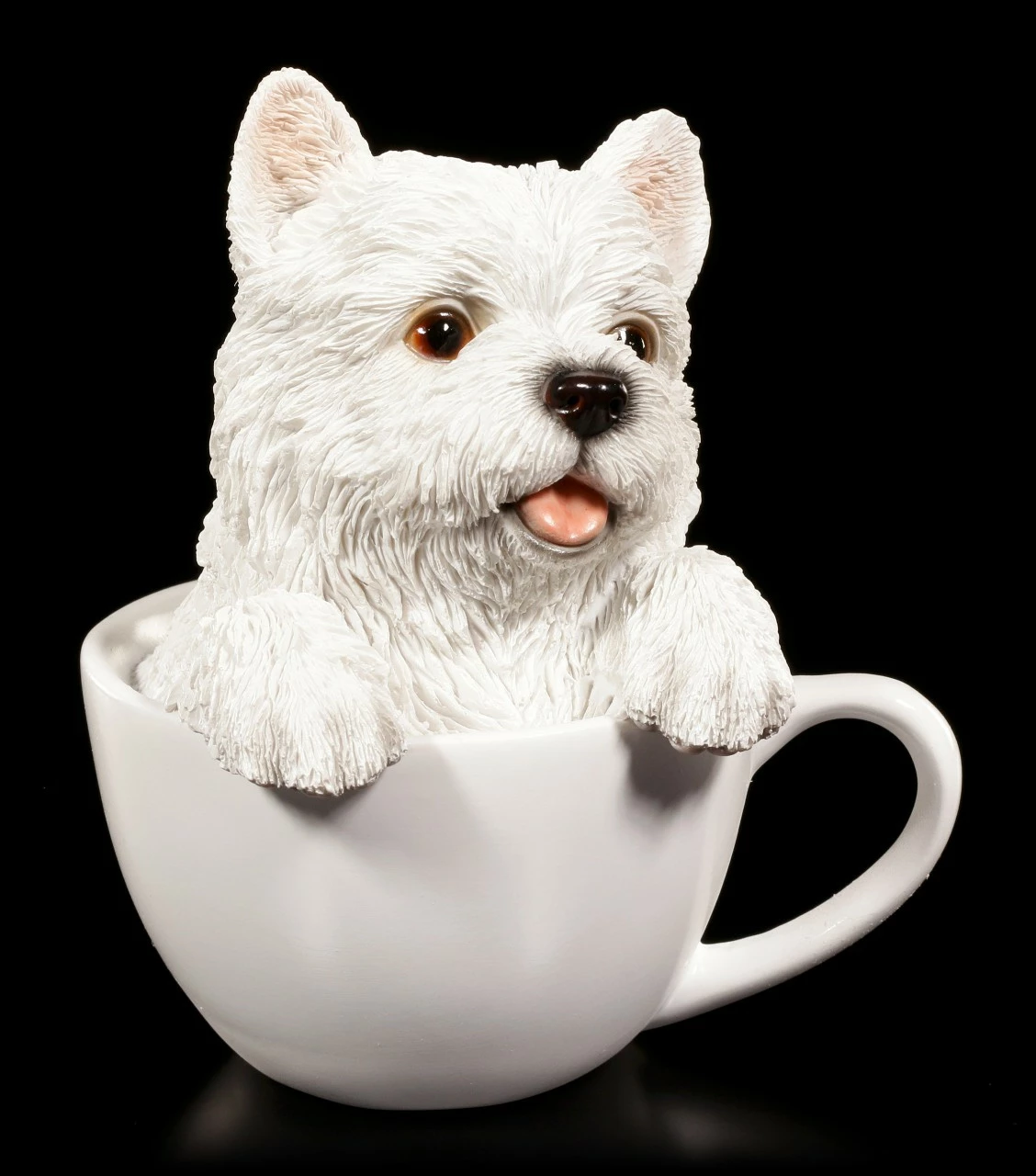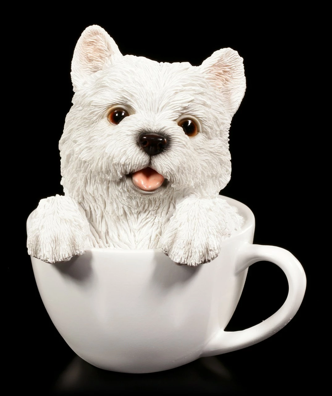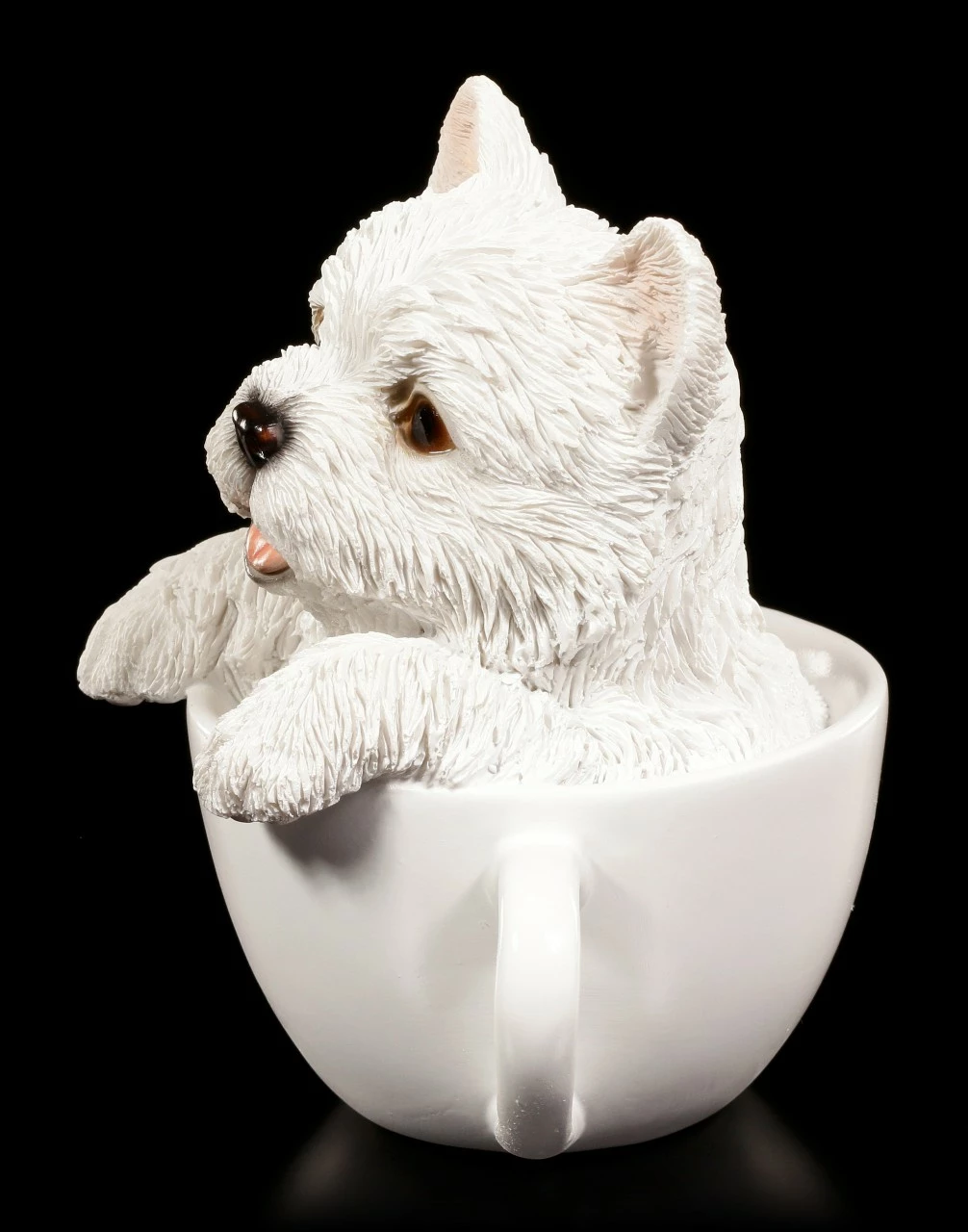 Große treue Augen blicken Ihnen aus der Tasse entgegen – der kleine Westi Welpe möchte so gerne ein neues zu Hause, vielleicht ja bei Ihnen? Oder entscheiden Sie sich vielleicht für einen seiner Freunde?