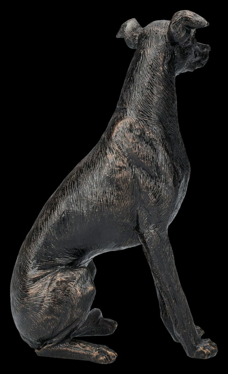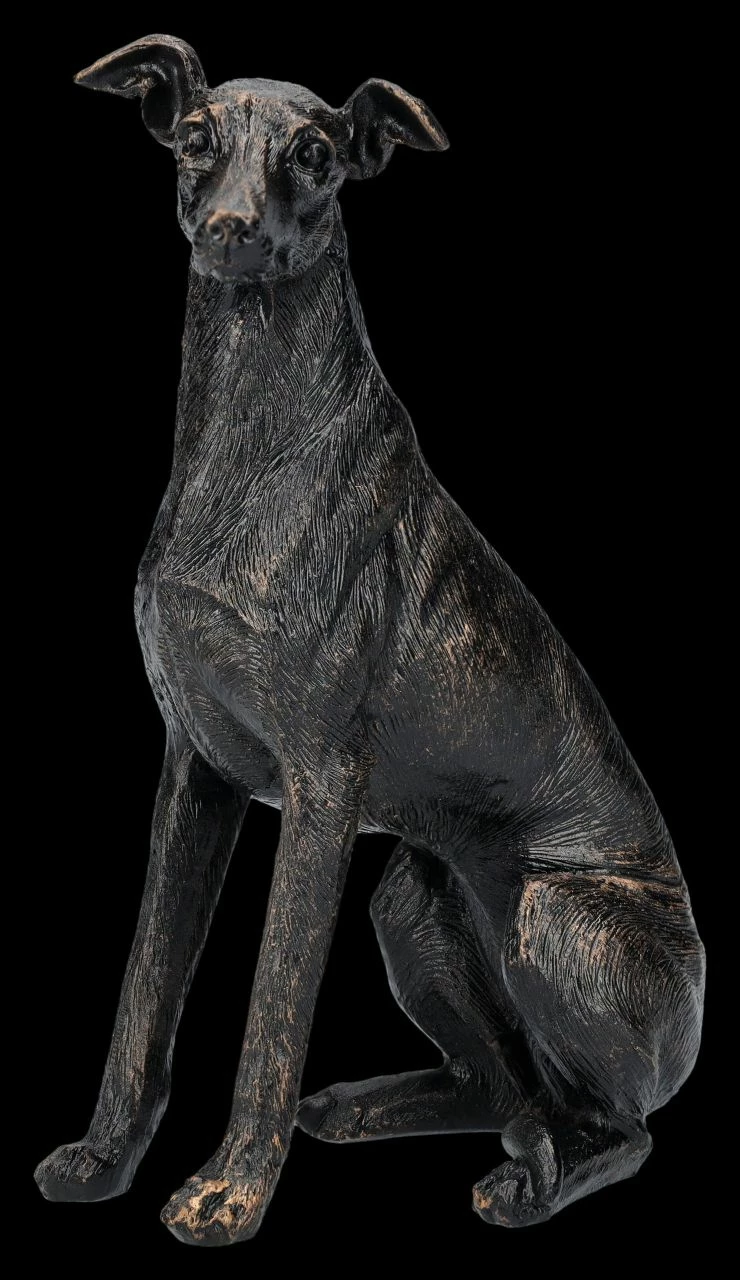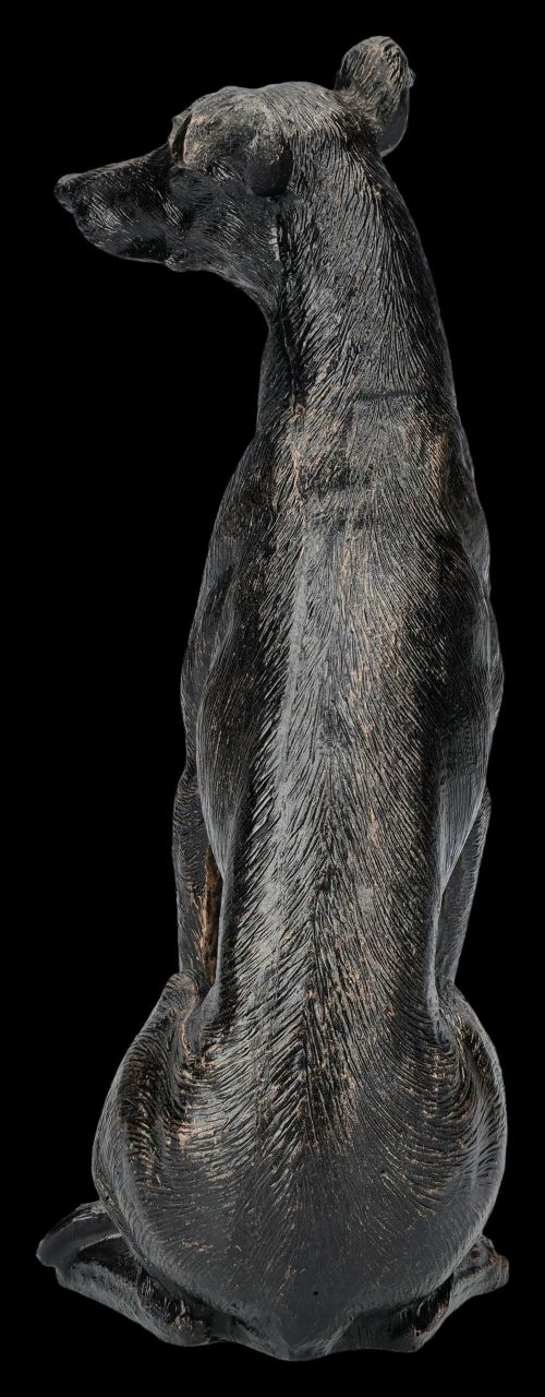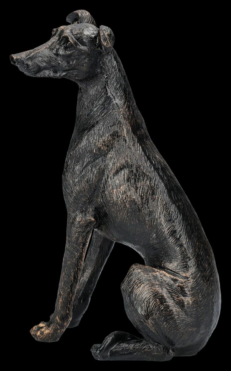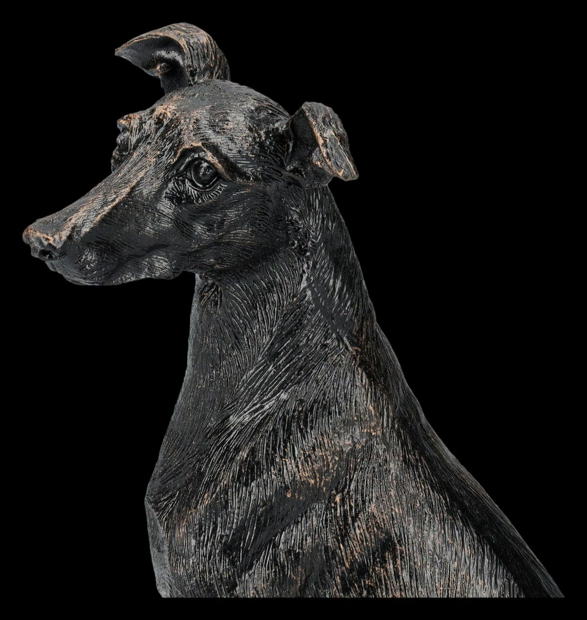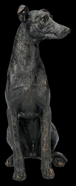 Perfekt in der Haltung ist diese Figur eines Windhundes Greyhound. Die gelassene Ruhe, aber auch die kraftvolle Stärke und Eleganz des schnellste Hundes der Welt ist bei dieser Skulptur absolut perfekt nachempfunden. Es ist kaum zu glauben, dass diese Rasse bei Windhundrennen an die 70 km/h erreichen können. Doch der große und elegante Greyhound ist durch sein ruhiges und freundliches Wesen auch ein wunderbarer Begleithund und idealer Familienhund, Die 15,5 cm hohe, 10,5 cm breite und 8,5 cm tiefe Hunde-Figur ist aus hochwertigem Kunststein (Polyresin) gefertigt. Der Windhund ist eine tolle Deko und perfektes Geschenk für alle Hunde- und insbesonders Greyhound-Freunde.