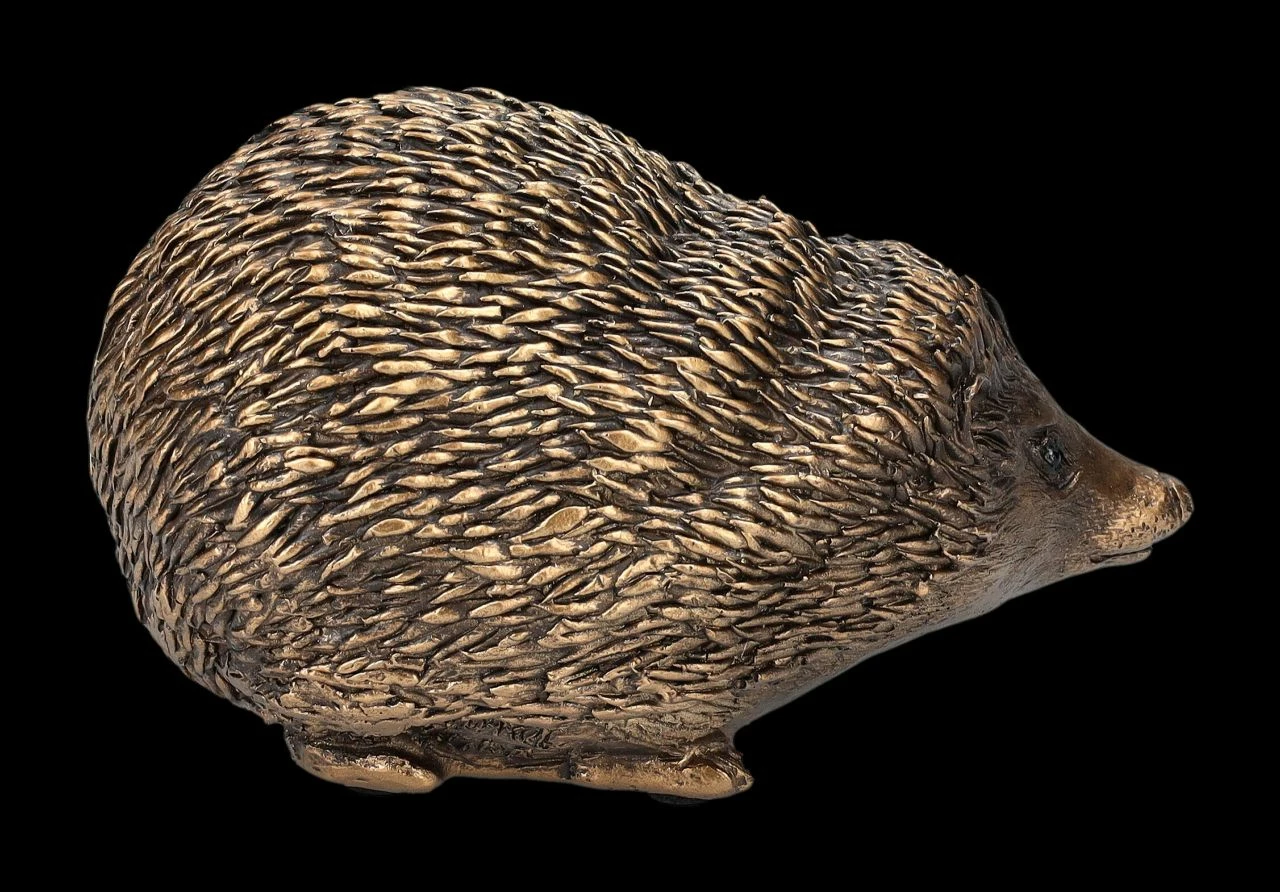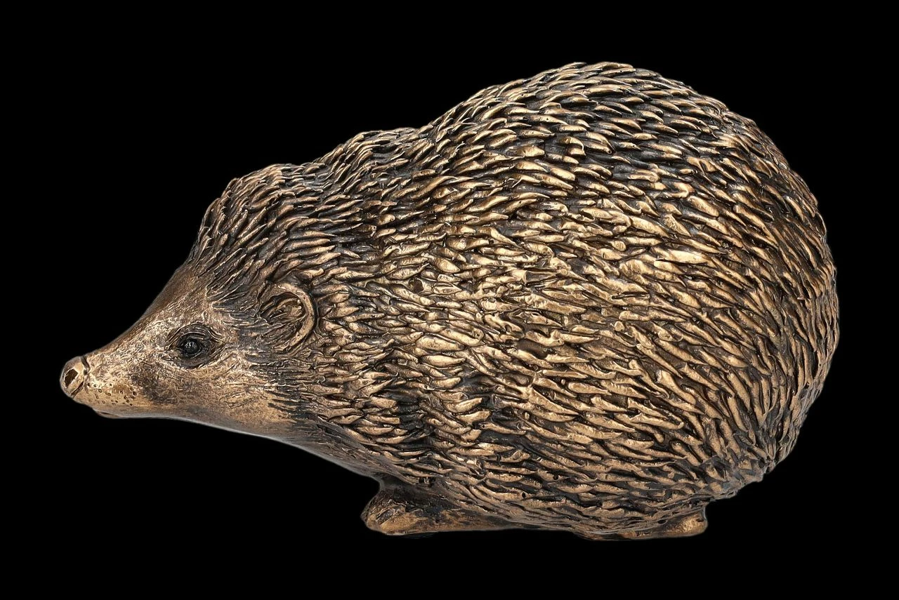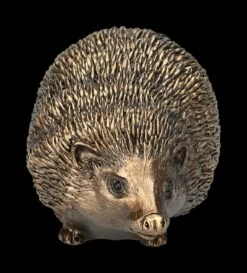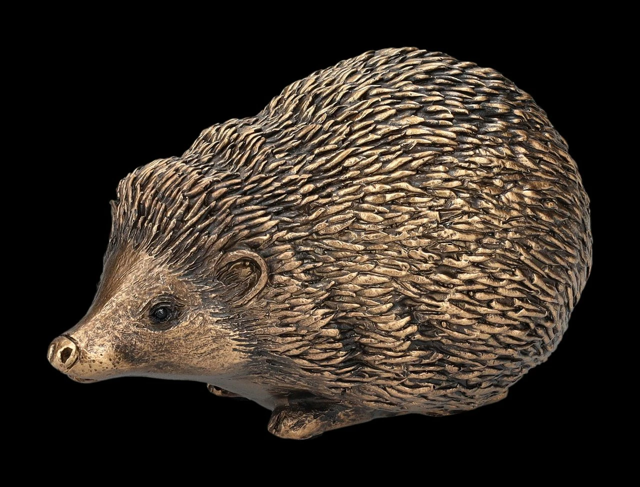 Neben ihren geliebten Pferden gehören auch Wildtiere aller Art zu den Tieren, die von der in England lebenden Künstlerin Harriet Glen in verschiedenen Skulpturen sehr realistisch nachgebildet wird. Dass Harriet Glen von ihrem Atelier in Dorset aus auf Pferde und Wildtiere blickt und sie gut beobachtet, kann man auch bei dieser fantastischen kleinen Igel Figur sofort sehen. Nicht nur unter Pferdefreunden sind die Skulpturen der Künstlerin zu wahren Sammelobjekten geworden. Der 7,5 cm hohe, 7,5 cm breite und 13 cm tiefe kleine Igel wurde detailreich aus bronziertem Kunststein (Polyresin) gefertigt. Ob zwischen den Blumen auf der Fensterbank, oder einem Sideboard oder Schreibtisch, die Igel-Figur wird in ihrer Natürlichkeit überall zum sofortigen Blickfang und ist damit auch ein perfektes Geschenk. In unserem Shop gibt es eine weitere Auswahl an Skulpturen der berühmten Künstlerin Harriet Glen