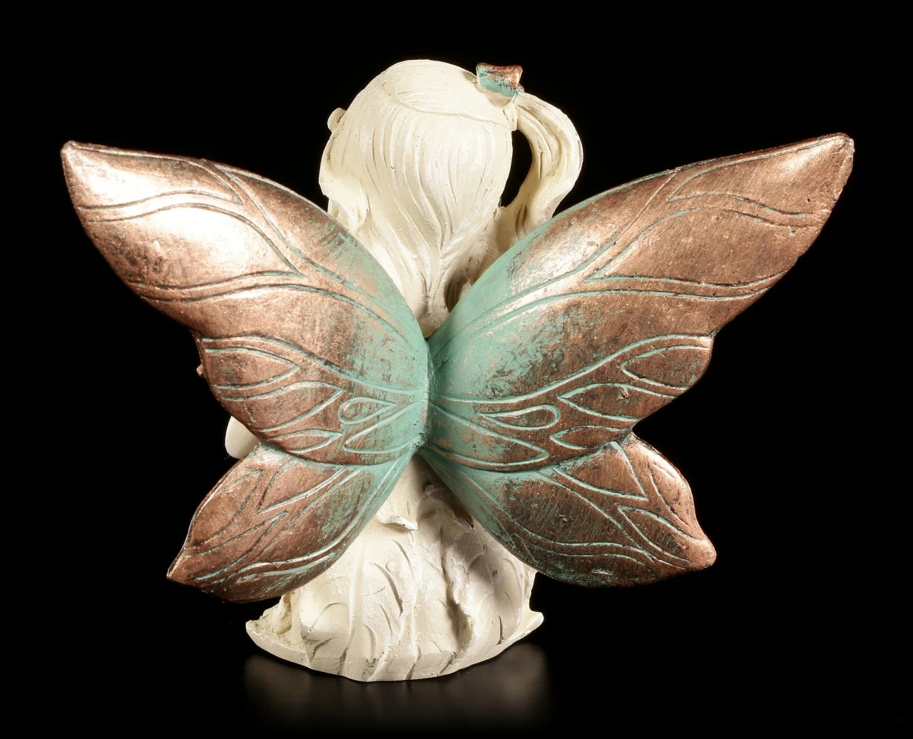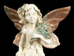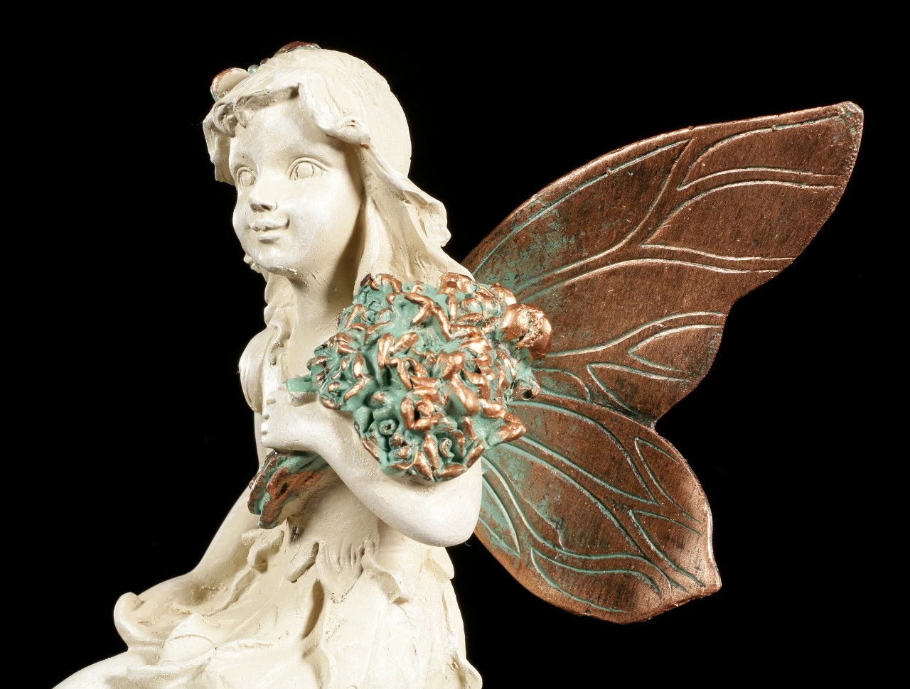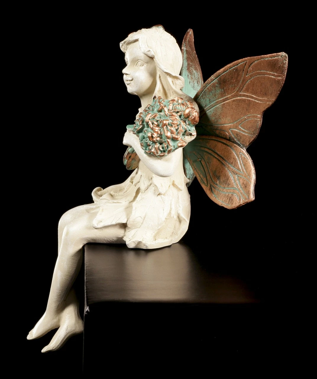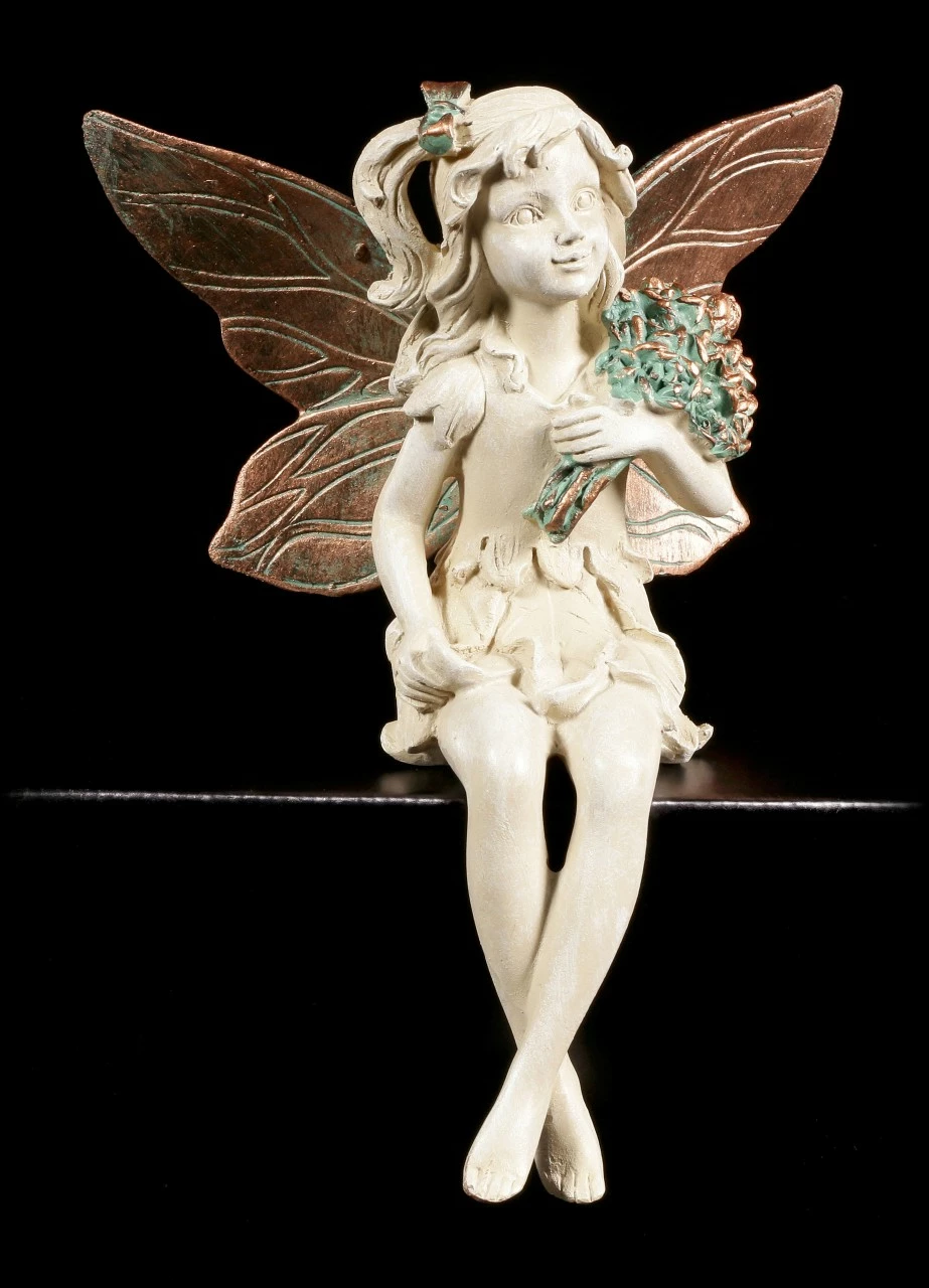 Der wunderschöne Elfen Kantenhocker wurde aus hochwertigem Kunststein geschaffen und handbemalt. Durch ihre Machart wirkt sie antik und trotzdem zeitlos. Die kleine Elfe hält einen schönen Blumenstrauß in ihrem Arm und lässt ihre Beine über die Kante baumeln. Auf einem Regal wird sie zu einem schönen Blickfang und schenkt jedem Betrachter ein freundliches Lächeln.