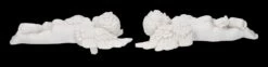Auch Engel brauchen mal ein kleines Schläfchen zwischendurch. Schließlich müssen sie ja stets wachsam sein und dann ist es ganz normal, wenn die Flügel mal so richtig schwer werden. Da kommt ihnen ein Regal bei lieben Menschen gerade recht, auf dem sie sich dann ausruhen können. Die beiden liebevoll aus Kunststein gefertigten und handbemalten Cherubs liegen dann ganz entspannt an der Kante und sind absolut niedlich anzusehen. Natürlich sind die beiden je 5 cm hohen, je 13,5 cm breiten und je 5 cm tiefen Engelchen auch ein fantastisches Geschenk und können mit lieben Freunden geteilt werden.