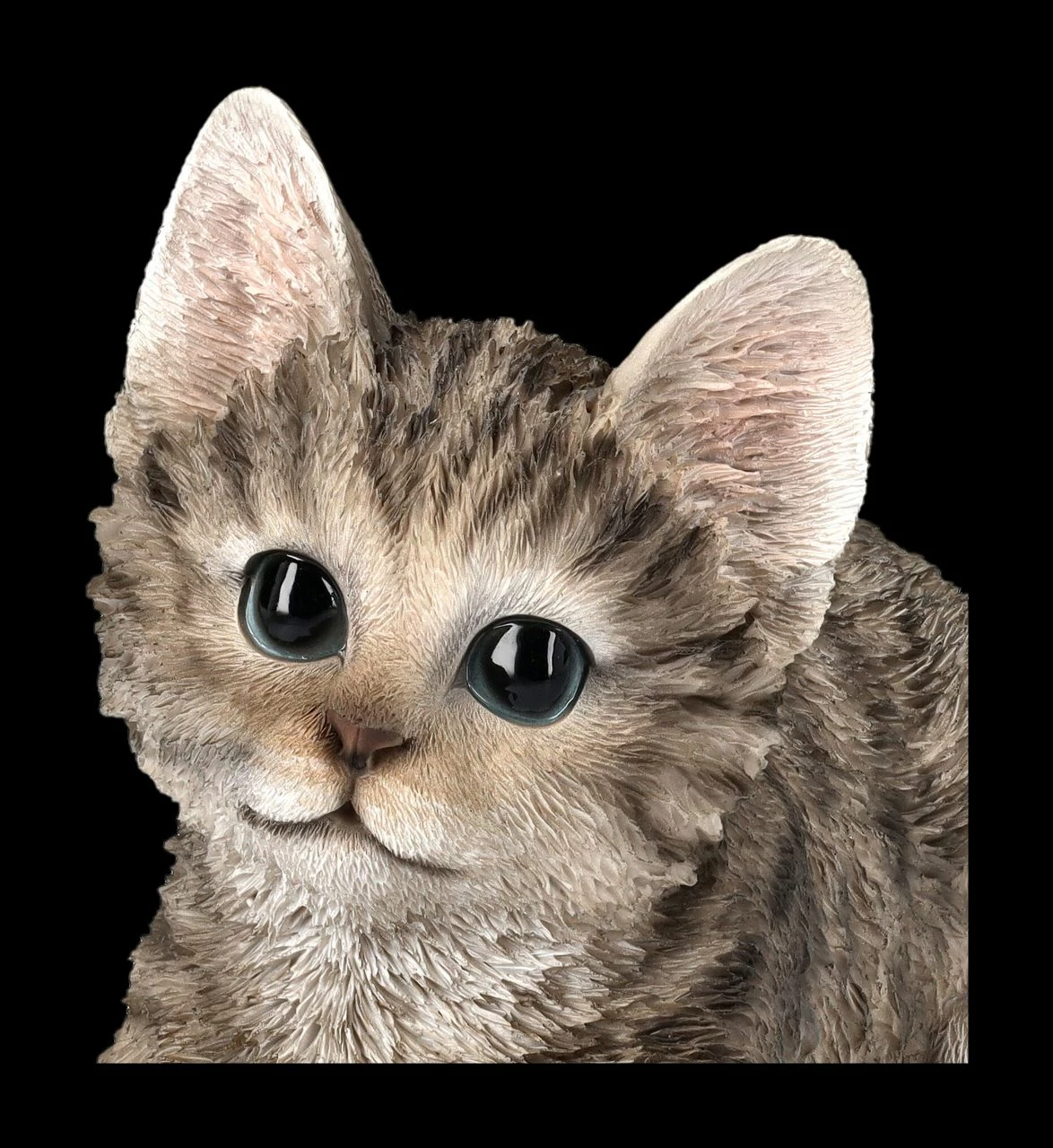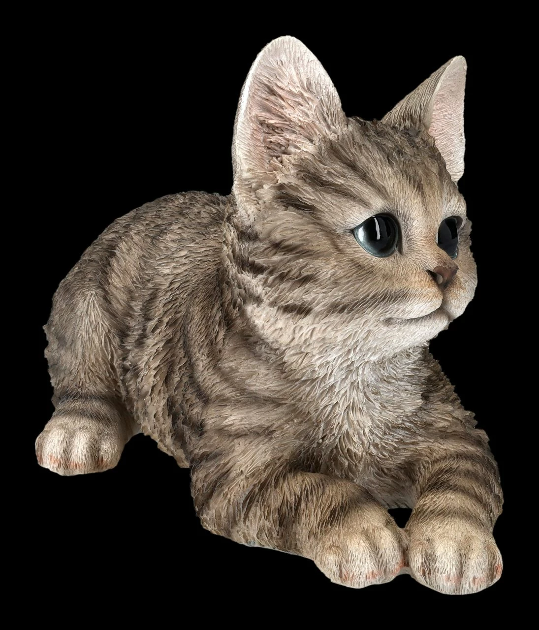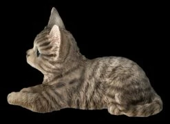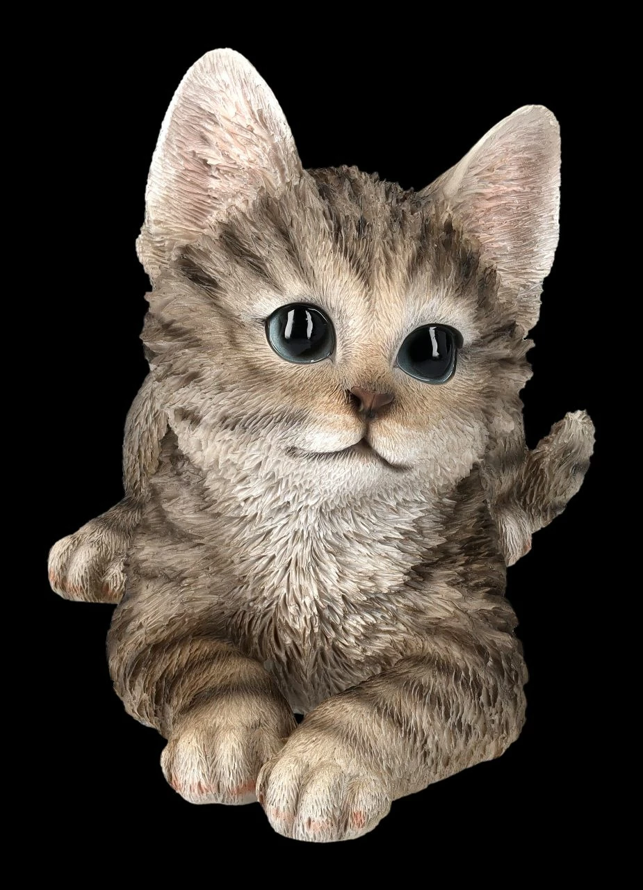 Ein Blick genügt und schon ist man in dieses süße Kätzchen verliebt…. Und es kann sogar auf dem Tisch oder der Fensterbank liegen und wird nicht einmal Katzenhaar-Allergiker stören. Auch sie werden es sich nicht nehmen lassen, dieses süßen Katzenbaby mit den großen Augen zu streicheln. Die von Hotant wieder einmal sehr realistisch und detailreich aus hochwertigem Kunststein (Polyresin) gefertigte Figur einer liegenden grauen Baby Katze wird mit ihrem unschuldigen Blick jeden begeistern. Sie wurde liebevoll handbemalt. Für jeden der Katzen liebt, sie aber eventuell nicht in der Wohnung halten kann, ist dieses realistische, 14 cm hohe, 22 cm breite und 12 cm tiefe süße Kätzchen doch ein wunderbares Geschenk. Sie kann aber auch eine liebevolle Erinnerung an das eigene Kätzchen sein.