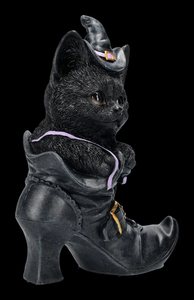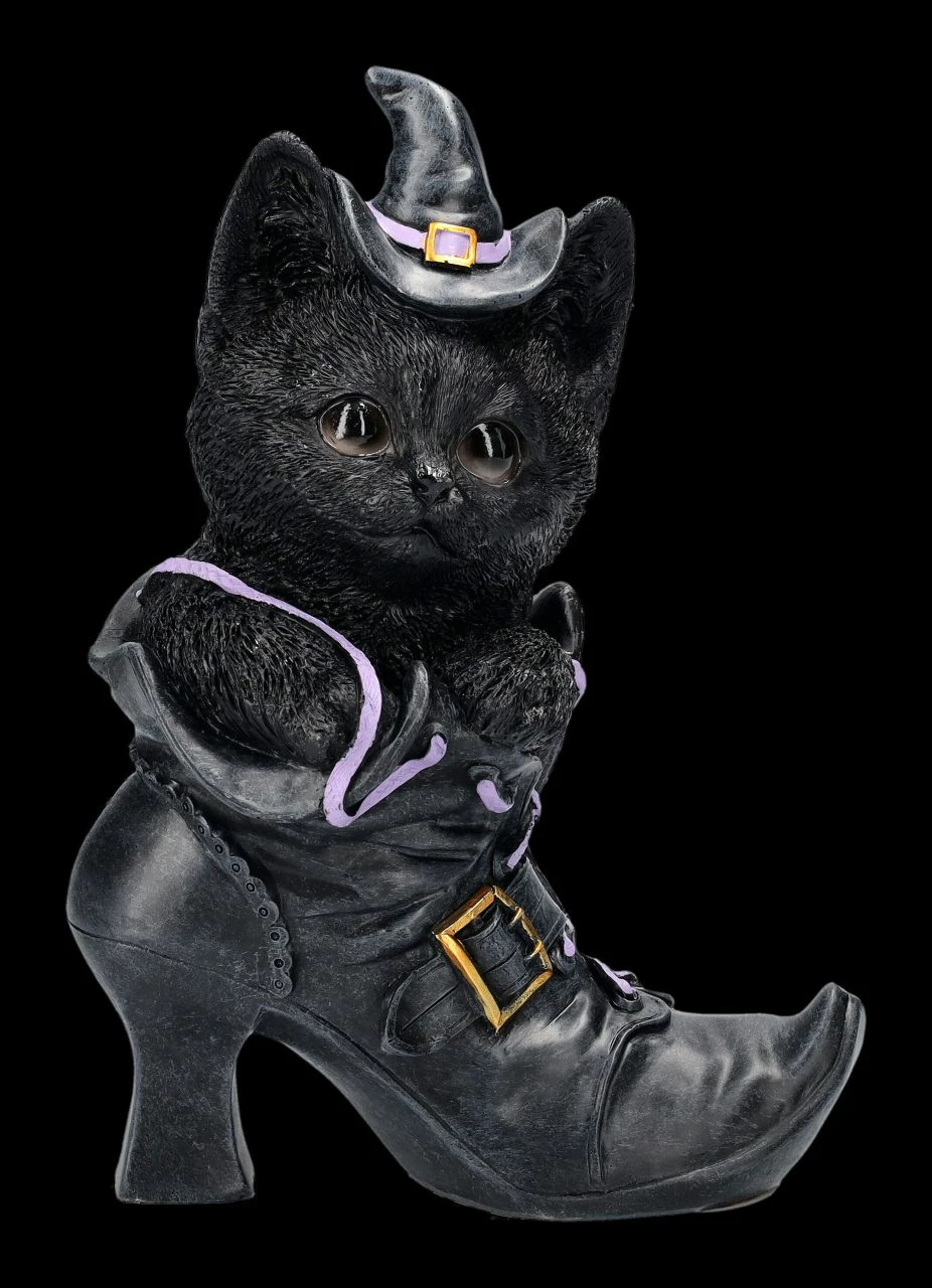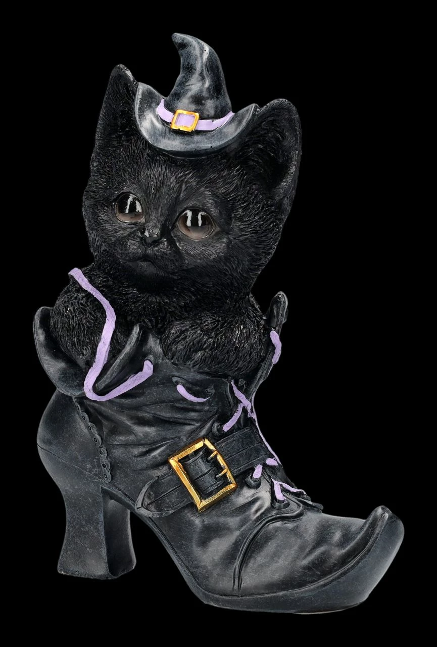 Nicht nur du hast Geschmack – scheint die kleine niedliche Hexenkatze ihrer Hexenfreundin zu sagen und hat sich im hĂŒbschen Hexenstiefel bequem gemacht. Schelmisch schaut sie daraus hervor und damit sie nicht herausgeholt wird, klammert sie sich an die SchnĂŒrsenkel. Liebevoll aus handbemaltem Kunststein (Polyresin) gefertigt, ist die 18 cm hohe, 12,5 cm breite und 8 cm tiefe Katzenfigur eine lustige Dekoration. Nicht nur Hexen, sondern alle die KĂ€tzchen lieben, werden sich ĂŒber die putzige Michivours Familiar als Geschenk total freuen.