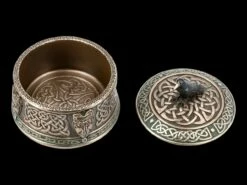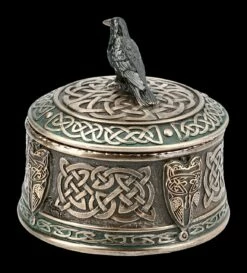 Ein Rabe sitzt auf dieser reich verzierten runden Schatulle aus bronziertem und coloriertem Kunststein (Polyresin). Sie stammt aus dem Haus Veronese und gehört zur Studio Collection. Die Schatulle Odin´s Wahrheit ist einfach wundervoll und besticht durch die vielen Details und die einzigartige Verarbeitung. Sie ist nicht nur sehr dekorativ, sondern auch ein fantastisches Geschenk für einen Wikinger, aber auch eine perfekte Verpackung für ein besonderes Geschenk.