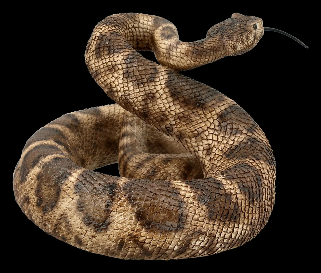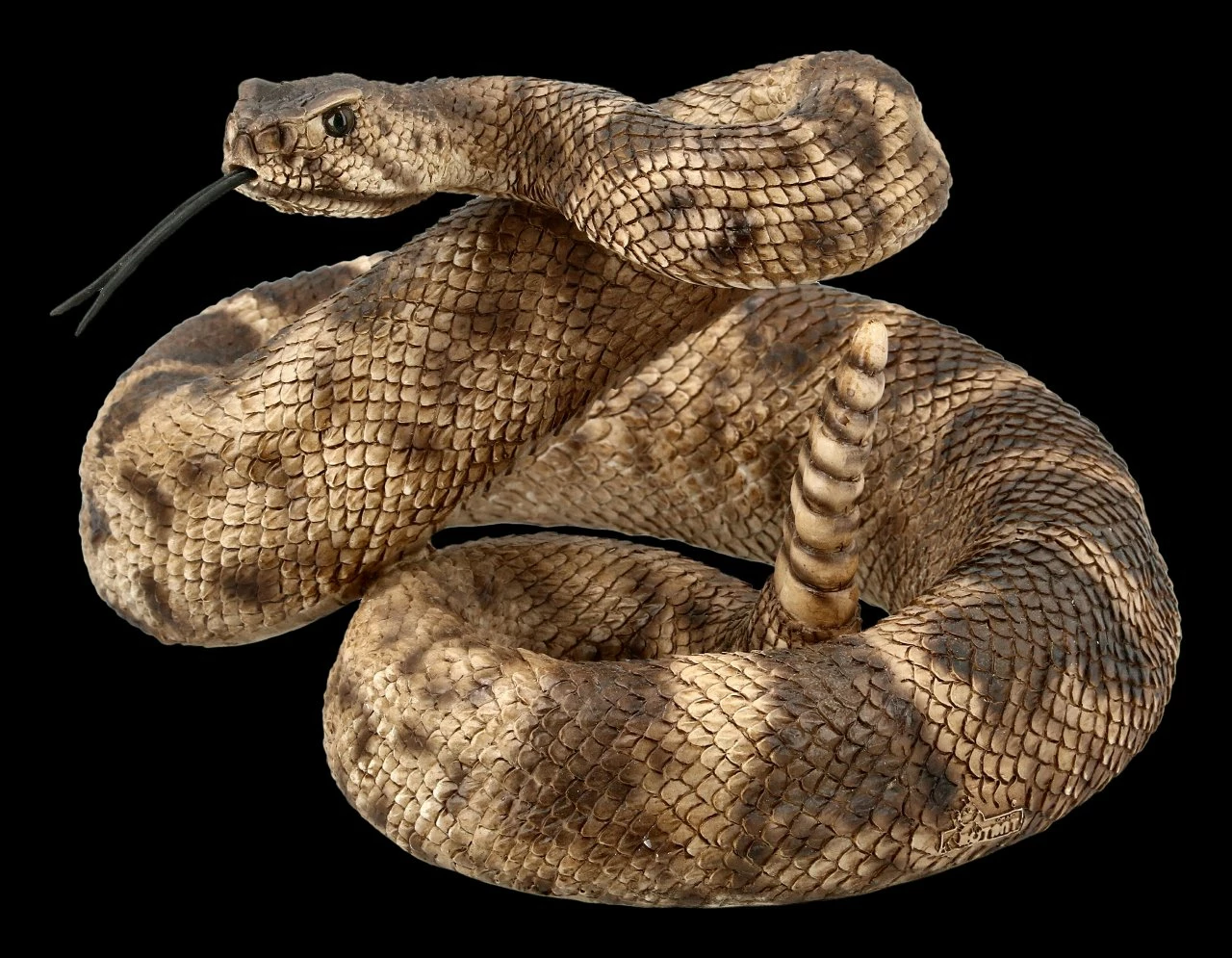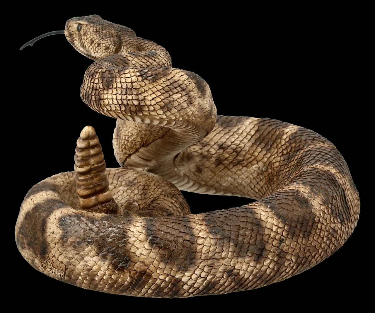 Zum Angriff gerollte Klapperschlange als Dekofigur