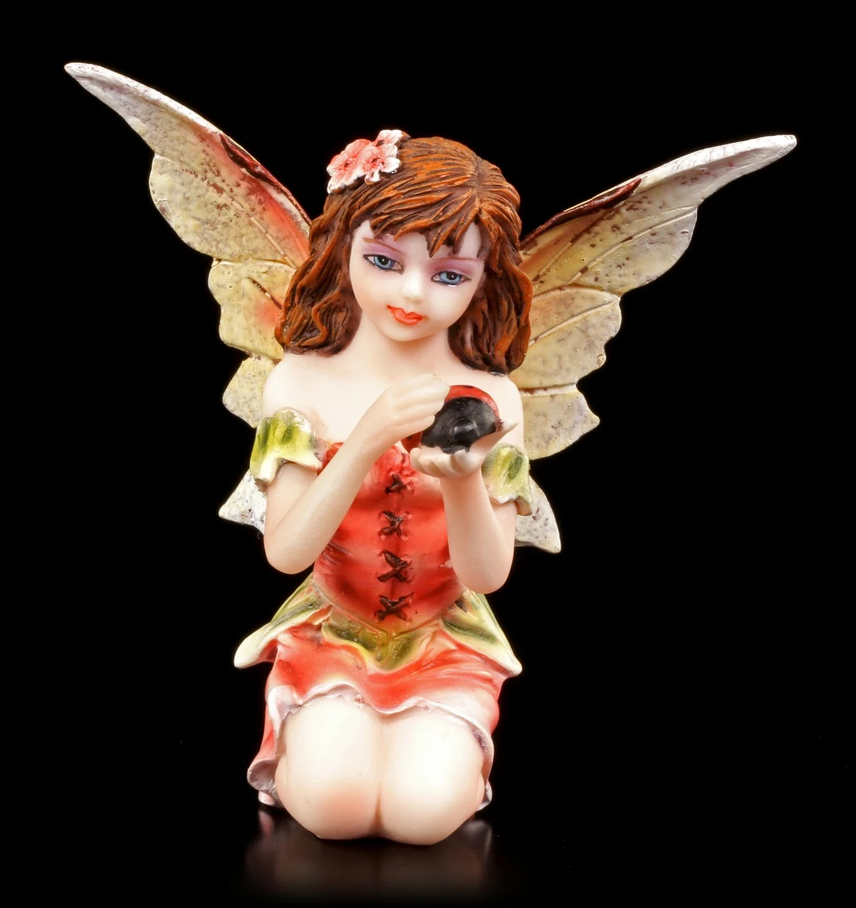 Handbemalte Elfenfigur aus Kunststein: Bigesia mit Marienkäfer