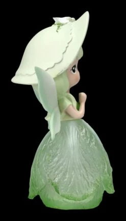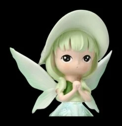 Wie ein zart-grünes Blatt im Frühling wird die niedliche kleine Fee aus liebevoll handbemaltem Kunststein (Polyresin) auch in der Dämmerung zur perfekten Deko zum Beispiel für jeden Geburtstagstisch. Denn die batteriebetriebene LED-Beleuchtung bringt ihren Rock mit weißem Licht zum Leuchten. Die 10 cm hohe, 7 cm breite und 5 cm tiefe kleine Fee im grünen Kleidchen ist – vielleicht auch gleich gemeinsam mit ihren Freundinnen aus unserem Shop – ein wunderbares Geschenk für alle Elfen- und Feen-Freunde. Für die Beleuchtung werden 3 x LR41 Knopfzellen benötigt, die nicht inklusive sind.