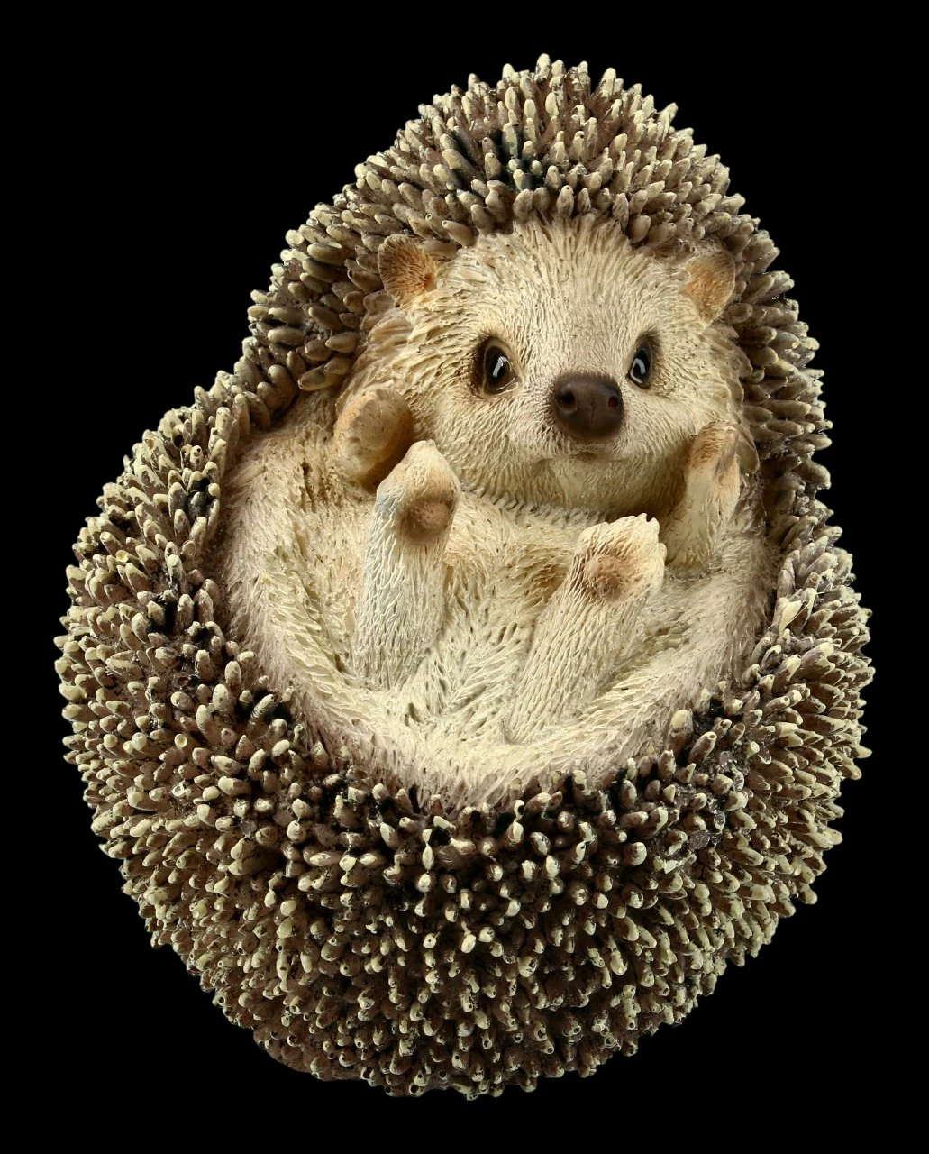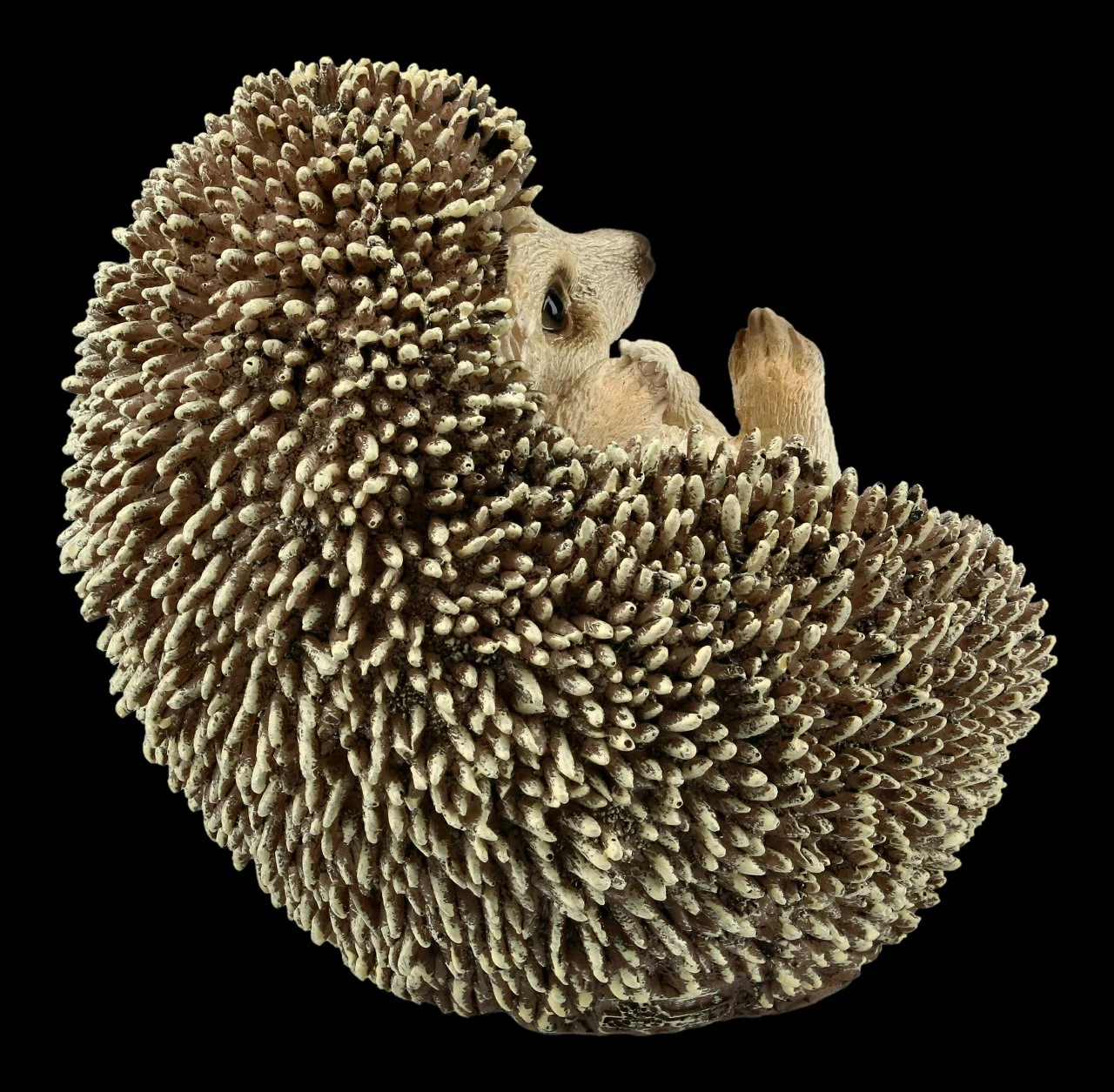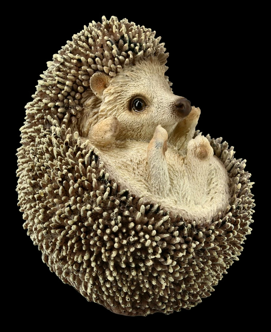 Bei diesem verschmitzten Gesichtsausdruck des niedlichen kleinen Igels stellt sich schon die Frage, ob er sich zusammenrollen, oder einfach nur herumkugeln möchte. Die bezaubernde Igelfigur ist außerordentlich detailreich aus Kunststein (Polyresin) gefertigt und liebevoll handbemalt. Sie ist 12,5 cm hoch, 11 cm breit und 13 cm tief. Wer diesem niedlichen Igel widerstehen kann,ist selber schuld.