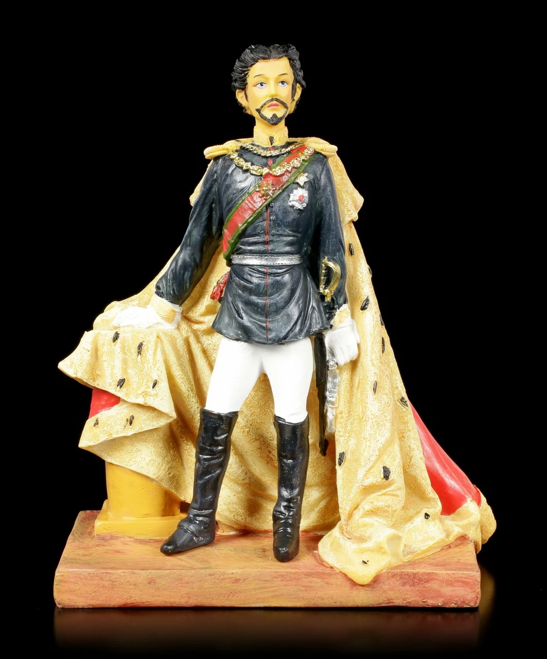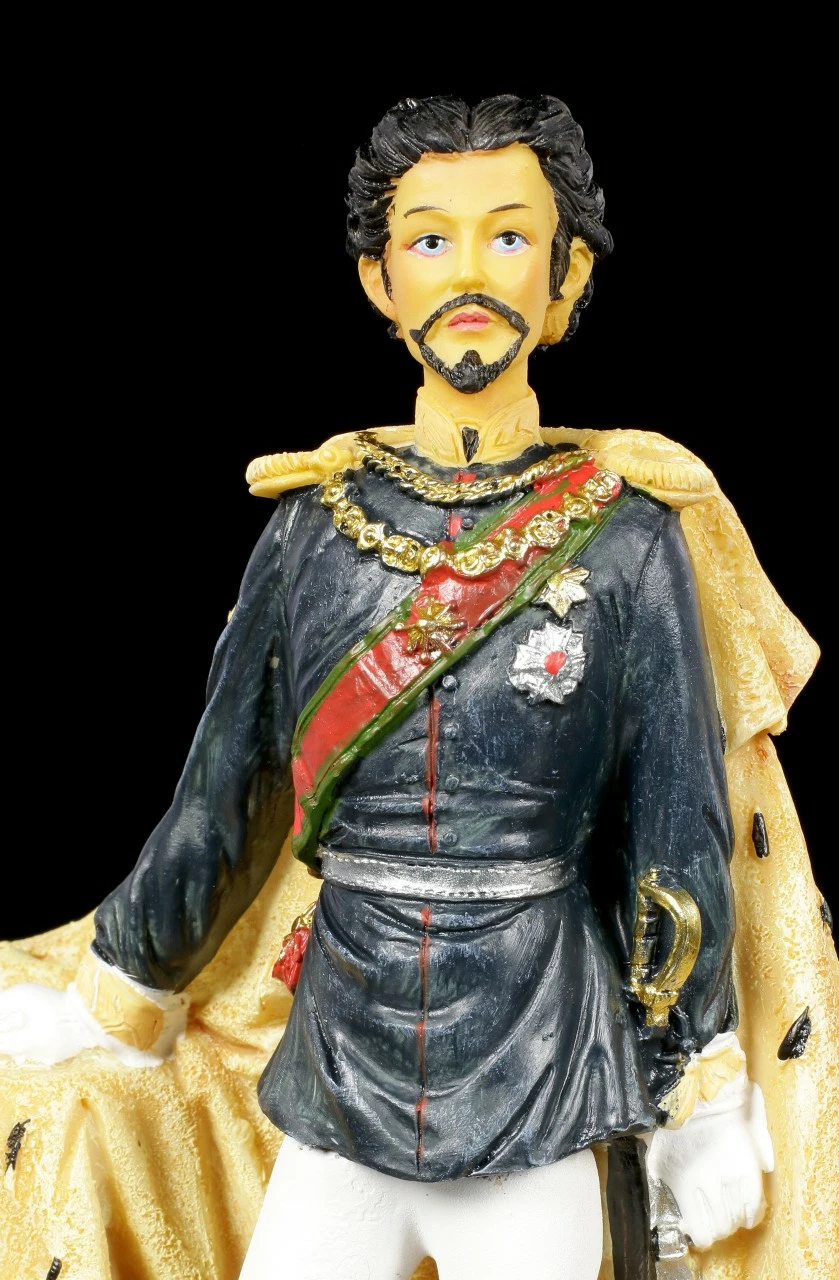 Hoheitsvoll steht der einzig wahre Märchenkönig, König Ludwig II, vor seinem Thron. Er ist der König von Bayern hat sich als Schloßbauherr bekannt und berühmt gemacht. Neuschwanstein, Herrenchiemsee und Linderhof sind seine berühmtesten Werke. Diese 20 cm Hohe Figur aus liebevoll handbemaltem Kunststein (Polyresin) ist eine kleine Hommage an den unvergesslichen König der Bayern.