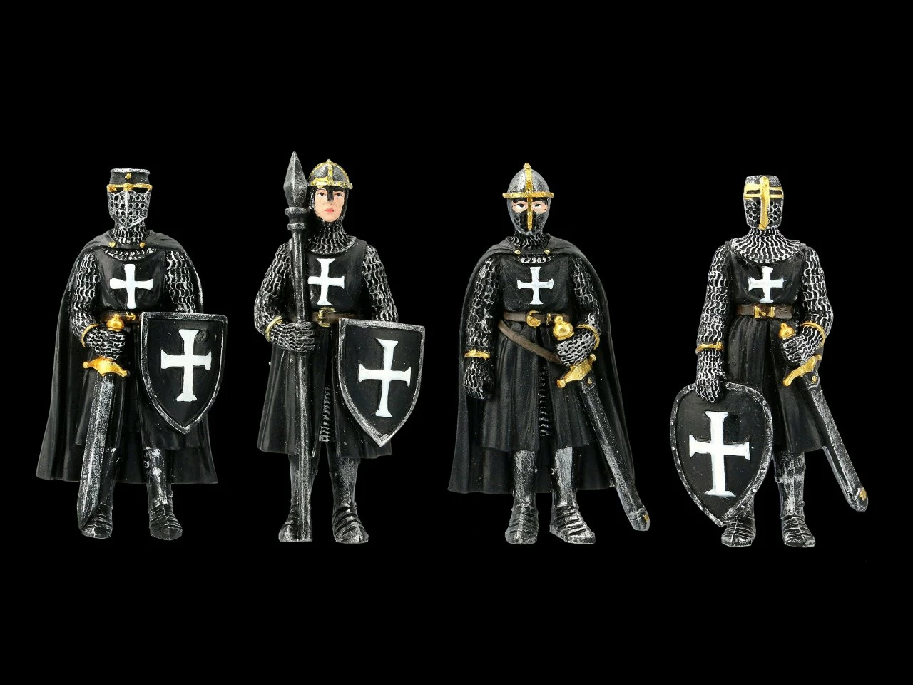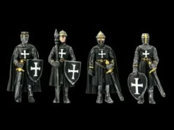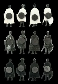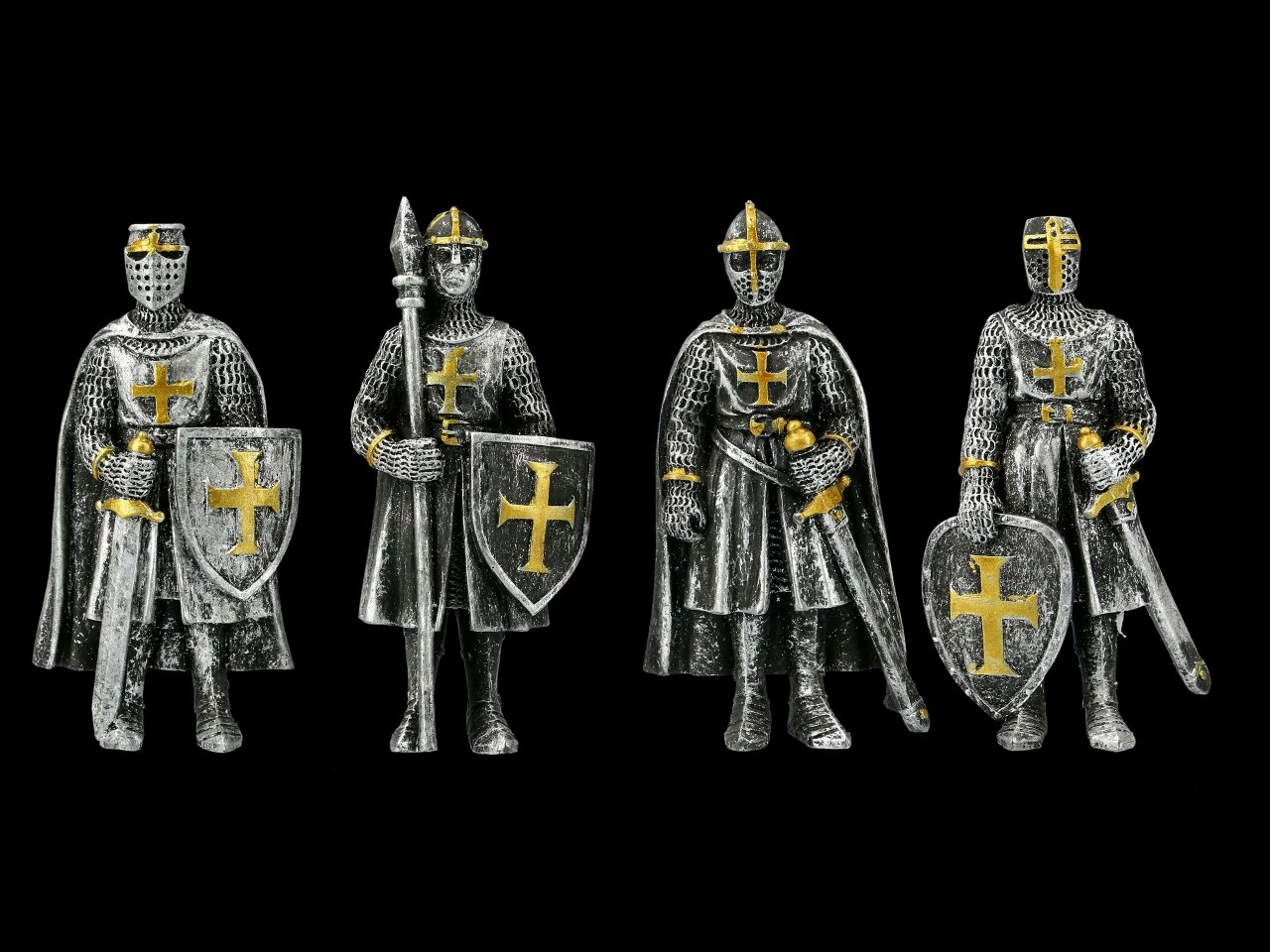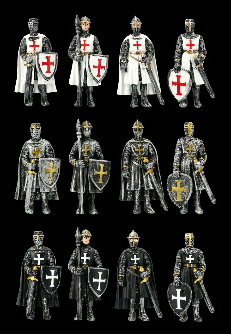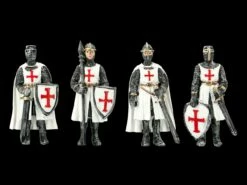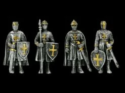 Vier Kreuzritter mit weißem Umhang und rotem Kreuz, vier in silberner Rüstung und mit goldenem Kreuz und weitere vier mit weißem Kreuz können von nun an – abwechselnd oder zusammen – Ihren Kühlschrank verzieren. Die tollen handbemalten Ritterfiguren haben ein Magnet auf der Rückseite. Die 12 Ritterfiguren im Set sind mit vielen Details aus Kunststein (Polyresin) gefertigt. Sie sind ca. 8,5 – 9 cm hoch, 4 – 4,5 cm breit und je 1,5 cm tief. Diese ungewöhnlichen Kühlschrank Magnete dürfen bei keinem Ritter fehlen.