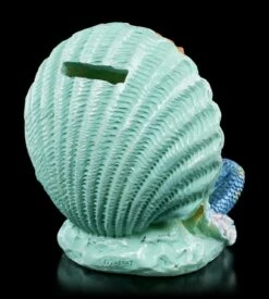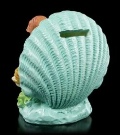 Die Spardose in maritimen Look bringt das geheimnisvolle tiefe Meer in Ihr Zimmer. Eine Meerjungfrau sitzt vor einer großen Muschel, die hinten den Schlitz für die Münzen hat. Sie präsentiert in ihren Armen eine kleine Muschel mit einer leuchtend weißen Perle. Die Siren mit Muschel wurde aus hochwertigem Kunstein geschaffen und detailliert handbemalt.