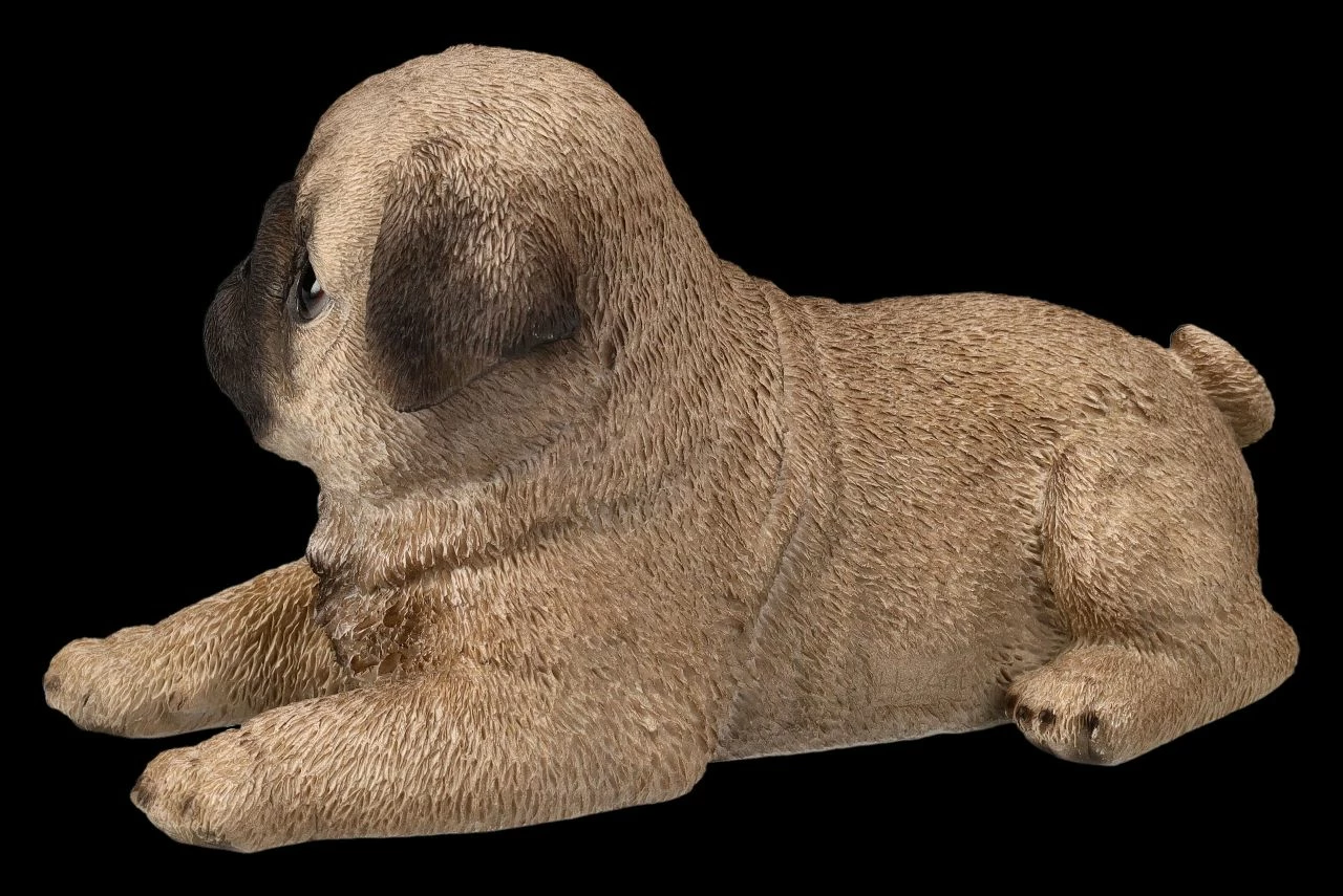 ‚Ein Mops kam um die Ecke….‘, das wird jeder Mops-Freund ständig zu hören bekommen. Aber wer kann diesem Mops-Welpen, der jeden mit großen Augen erwartungsvoll anschaut, schon widerstehen? Wenn diese süße Welpen-Figur mit dem knautschigen Gesicht auf einem Schreibtisch liegt, wird sie sicher nicht nur alle Hundefreunde jederzeit aufmuntern und zum Lächeln bringen. Die niedliche Welpen-Figur wurde von HotAnt außerordentlich realistisch aus hochwertigem Kunststein (Polyresin) gefertigt und liebevoll handbemalt. Der lustige, 11 cm hohe, 15 cm breite und 20 cm tiefe Mops-Welpe ist nicht nur für alle Freunde dieser Hunderrasse und für Züchter ein fantastisches Geschenk, über den kleinen liegenden Mops-Welpen wird sich jeder Hundefreund freuen. Weitere tolle Tier-Figuren von HotAnt findet Ihr in unserem Shop.