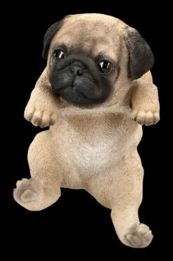 Dieser abenteuerlustige Mops darf sogar im Blumentopf wühlen. Zumindest versucht er, in den Topf zu gelangen. Die lustige und außerordentlich realistisch und detailreich gefertigte Figur eines Mops-Welpen von Hotant wird als Blumentopf-Hänger mit Sicherheit jeden begeistern. Der 18 cm hohe, 10,5 cm breite und 17,5 cm tiefe Mops Welpe wurde aus hochwertigem Kunststein (Polyresin) gefertigt und liebevoll handbemalt. Er ist eine wirklich witzige Deko und auch ein perfektes Geschenk für alle Mops-Freunde. Die Lieferung erfolgt ohne Dekoration.