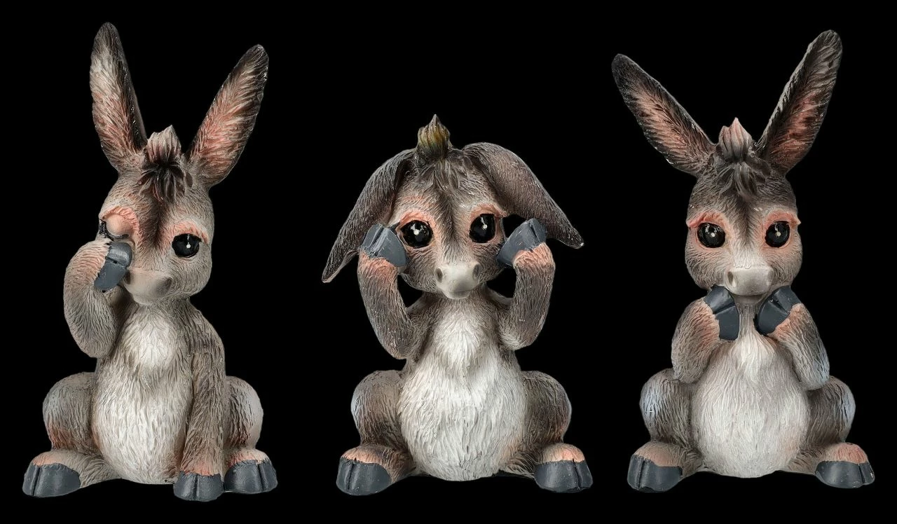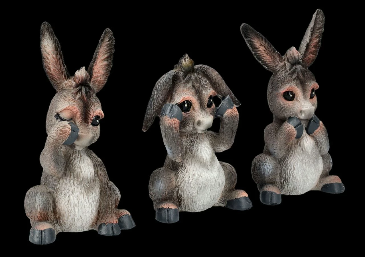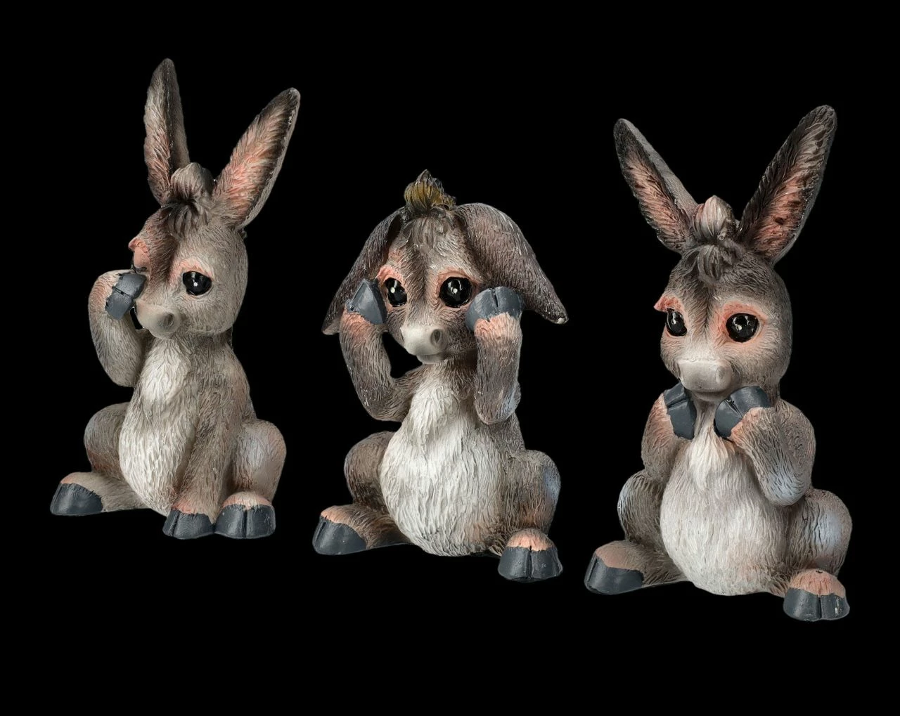 Nichts Böses sehen, hören, sagen: Lustige Esel Figuren im Trio für gute Laune