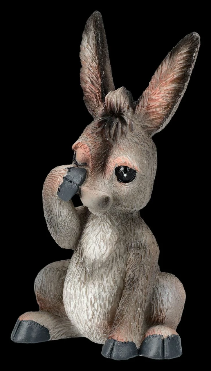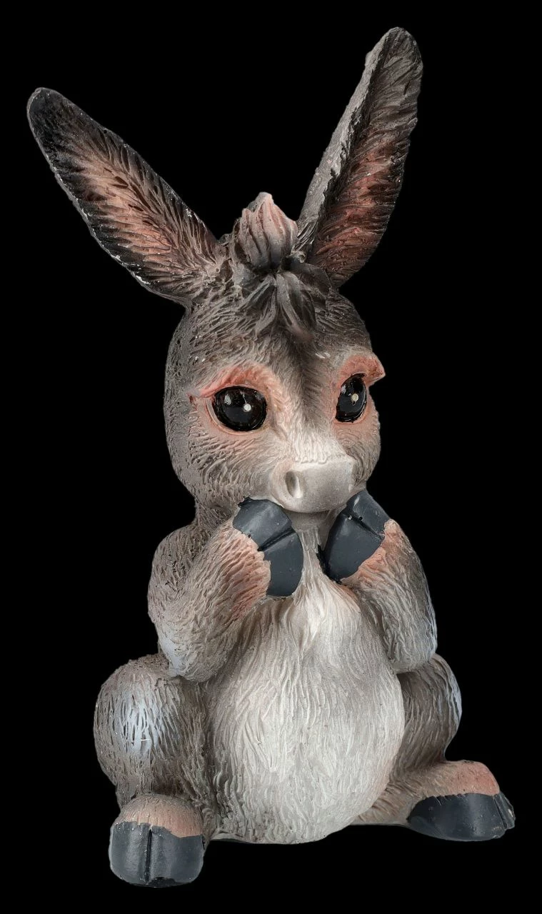 Soll das nun heißen, dass ich ein Esel bin, wenn ich nichts Böses hören, sehen oder sagen möchte, oder dass auch Esel so schlau sind? Wer diese drei lustigen Esel-Figuren aus handbemaltem Kunststein (Polyresin) auf Ihrem Schsreibtisch oder im Regal entdeckt, wird sich sicher diese Frage stellen. Die 9.5 – 11,5 cm hohen, 6,5 cm breiten und 4,5 – 5 cm tiefen Eselsfiguren von Nemesis Now aus Kunststein (Polyresin) sind liebevoll handbemalt. Die drei können durchaus auch ein vielsagendes Geschenk sein.