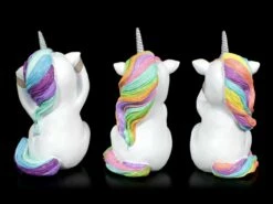 Die süßen drei Regenbogen Einhörner verkörpern Nichts Böses Hören, Sagen, Sehen. Das Kunststein Trio wurde liebevoll handbemalt und ist ein perfektes kleines Mitbringsel oder Geschenk für einen Sammler.