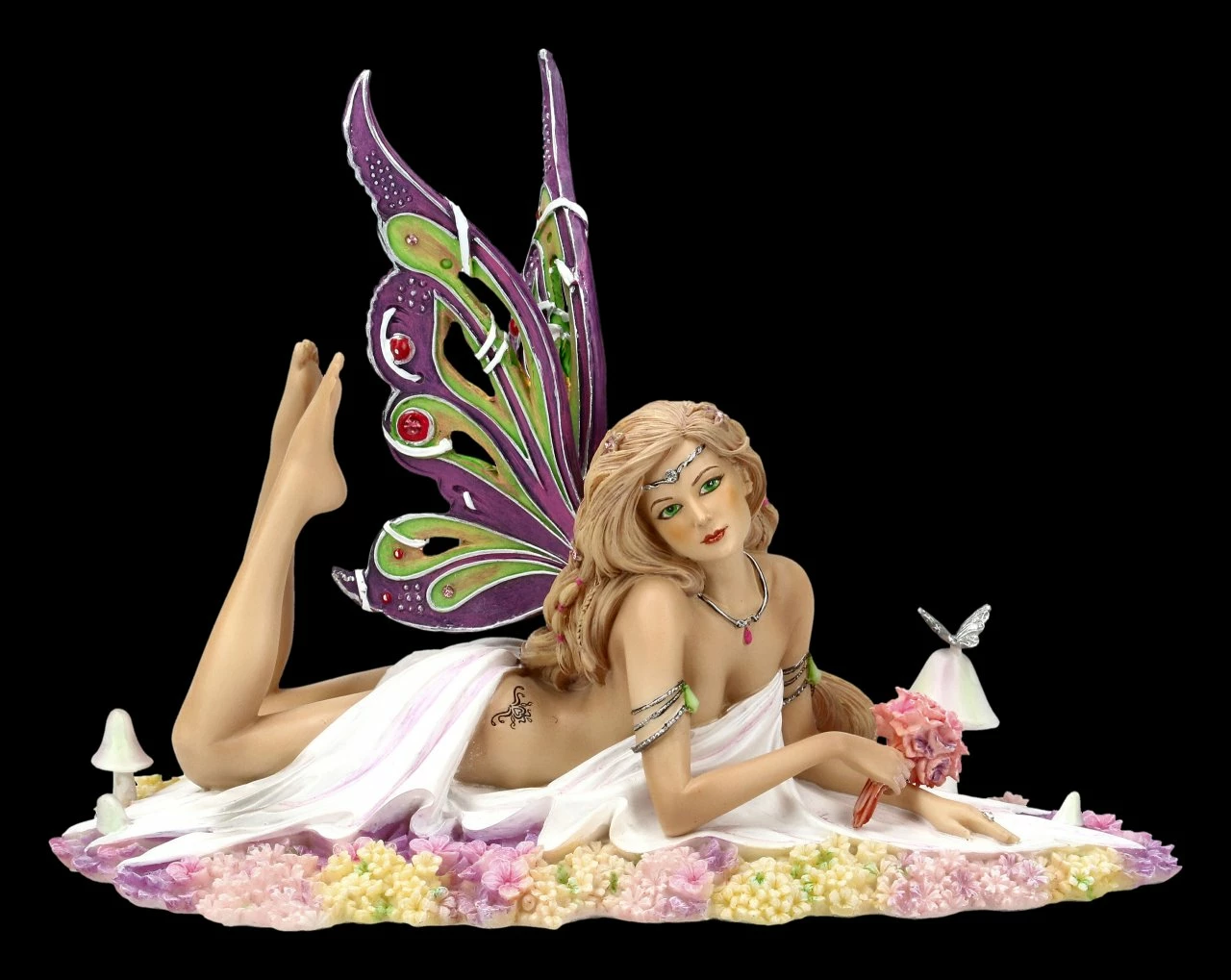 Petalite liegt anmutig in einem Blumenmeer und hält selbst einen Blumenstrauß in der Hand. Für wen er wohl ist? Für ihren Liebsten? Die anmutige Elfe wird durch die feine Farbgebung und den dekorativen Schmucksteinchen zu einem sinnlichen Hingucker. Die handbemalte Nemesis Now Elfe wurde auf 3000 Stück limitiert und kommt mit Zertifikat in einer schönen Geschenkbox.