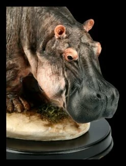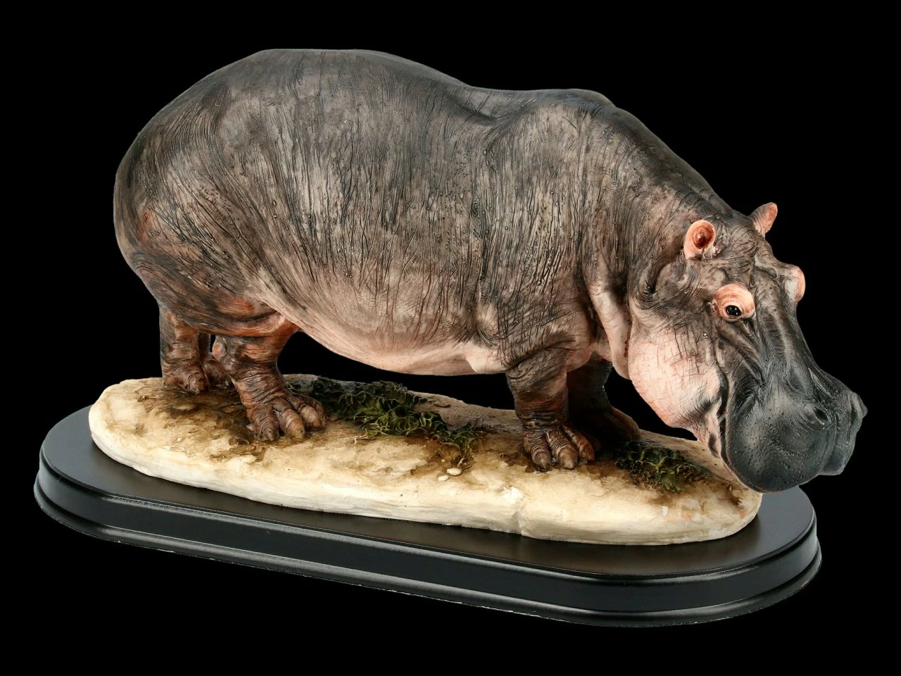 Handbemalte Nilpferd Figur auf schwarzem Sockel