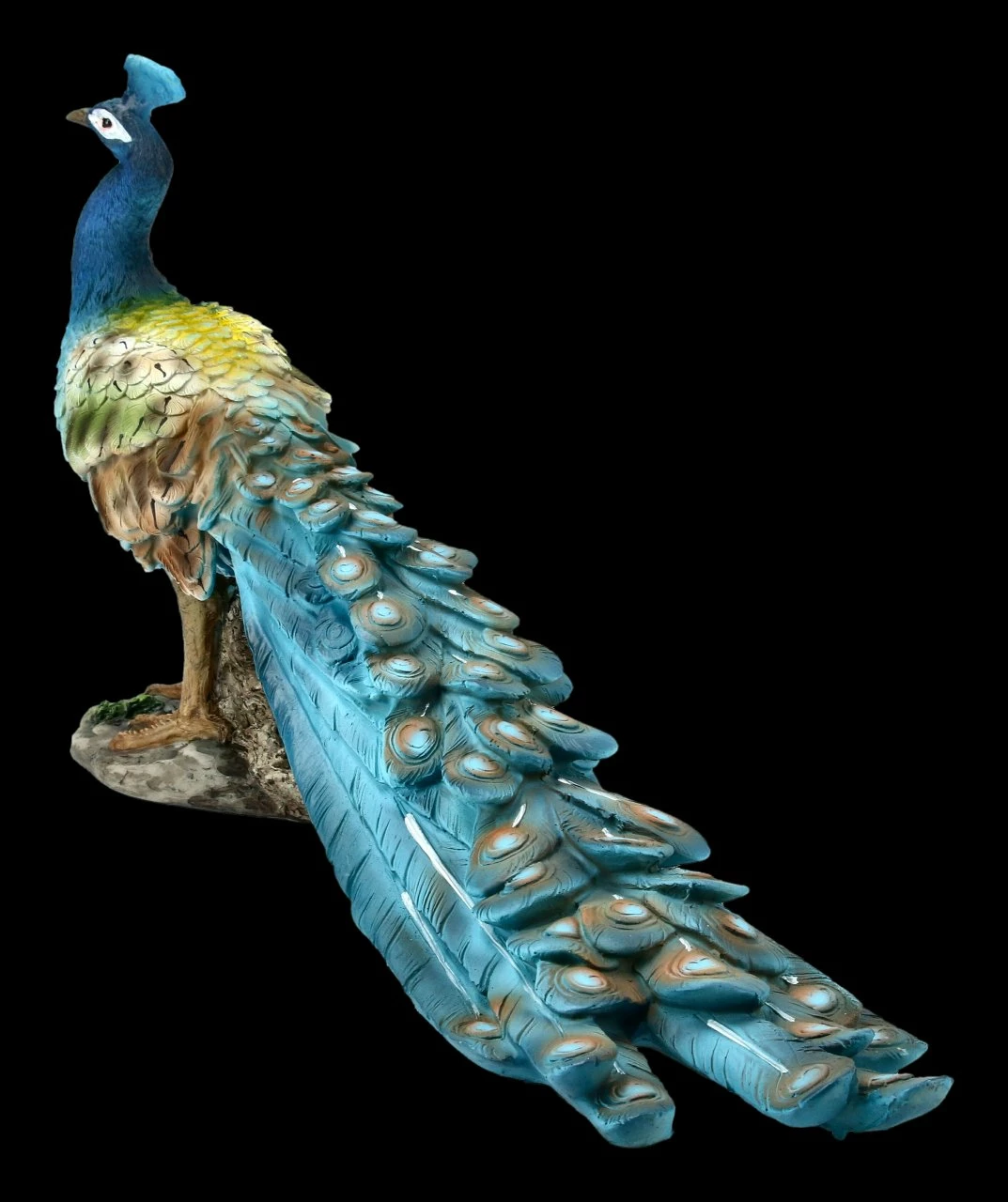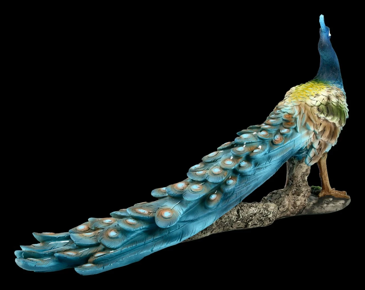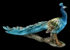 Wunderschön und edel ist dieser detailreich aus Kunststein (Polyresin) gefertigte und liebevoll von Hand bemalte Pfau. Er wirkt in seiner Farbgestaltung unglaublich detailgetreu und zart. Der schöne Pfau hat eine Höhe von 17,5 cm, eine Breite von 9 cm und eine Tiefe von 35,5 cm. Der handbemalte Pfau ist das ganze Jahr über ein wirklich wunderschönes Dekoelement und ein absoluter Blickfang.