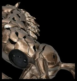 Das kunstvolle und durch die abstrakte und sehr moderne Darstellung eines Pferdes beim Galopp ist diese Pferdefigur aus der Studio Collection von Veronese ausgesprochen effektvoll. Die Silhouette des auf einem Sockel stehenden edel bronzierten Pferdes im abstrakten Galopp ist ausgesprochen raffiniert inszeniert und selbst in der Dunkelheit ein faszinierender Blickfang. Denn durch die LED-Beleuchtung, bei der der Körper des Pferdes warm-weiß aufleuchtet, entsteht ein magischer Eindruck, der den künstlerischen Charakter der Pferde-Skulptur unterstreicht. Die 21 cm hohe, 26 cm breite und 8,5 cm tiefe Pferde-Figur aus hochwertigem Kunststein (Polyresin) ist ein moderner und stilvoller Blickfang in jedem Interieur. Für die batteriebetriebene LED-Beleuchtung werden 3 x LR44 Batterien benötigt, die nicht im Lieferumfang enthalten sind. Diese moderne Version einer Pferde-Skulptur ist – vielleicht gleich in Kombination mit den weiteren Pferde-Figuren von Veronese aus unserem Shop – für jeden Pferdeliebhaber ein wunderbares und stilvolles Geschenk.