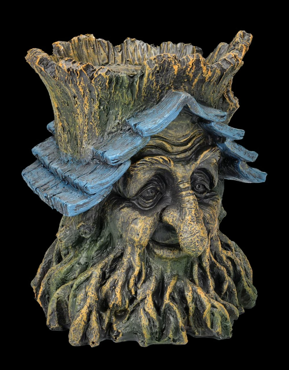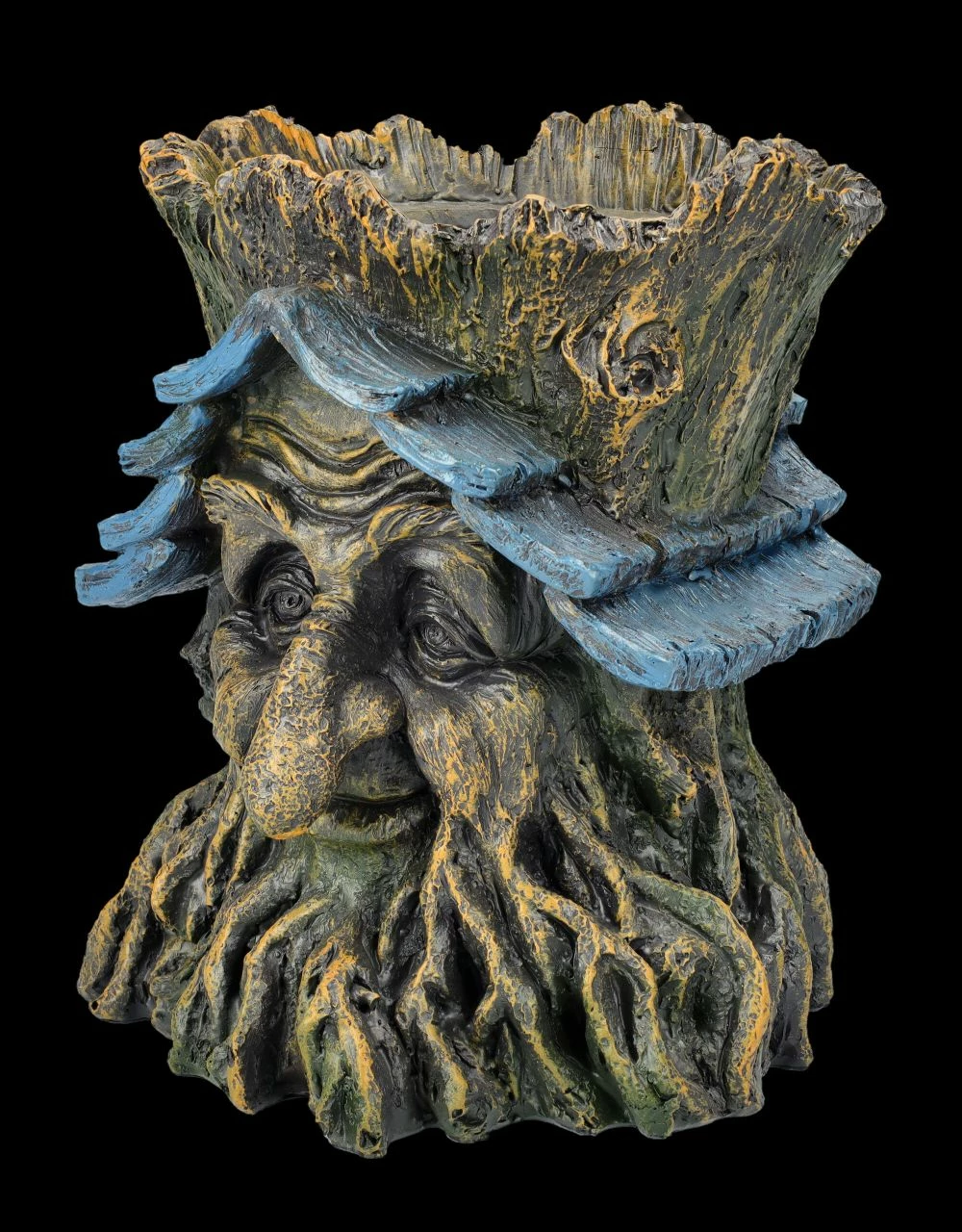 Als Waldgeist ist der Greenman Ent natürlich ganz besonders dazu geeignet, jede Pflanze zu behüten. Also ist er – vielleicht auch gleich mit einen schönen kleinen Zierapfel – ein perfektes Geschenk. Der Pflanztopf mit dem freundlichen Gesicht des Greenman Ent ist 18 cm hoch, 14,5 cm breit und 14,5 cm tief und hat ein Ablaufloch. Die Öffnung bei dem Pflanztopf aus liebevoll handbemaltem Kunststein (Polyresin) hat einen Durchmesser von 9 cm. Die Dekoration aus der Abbildung ist nicht in der Lieferung enthalten.