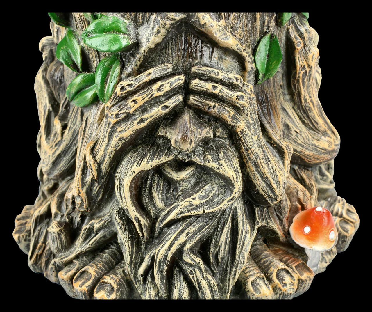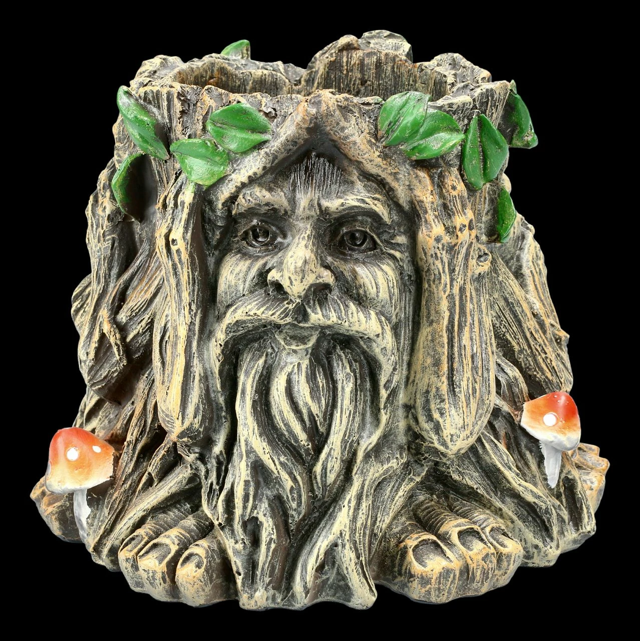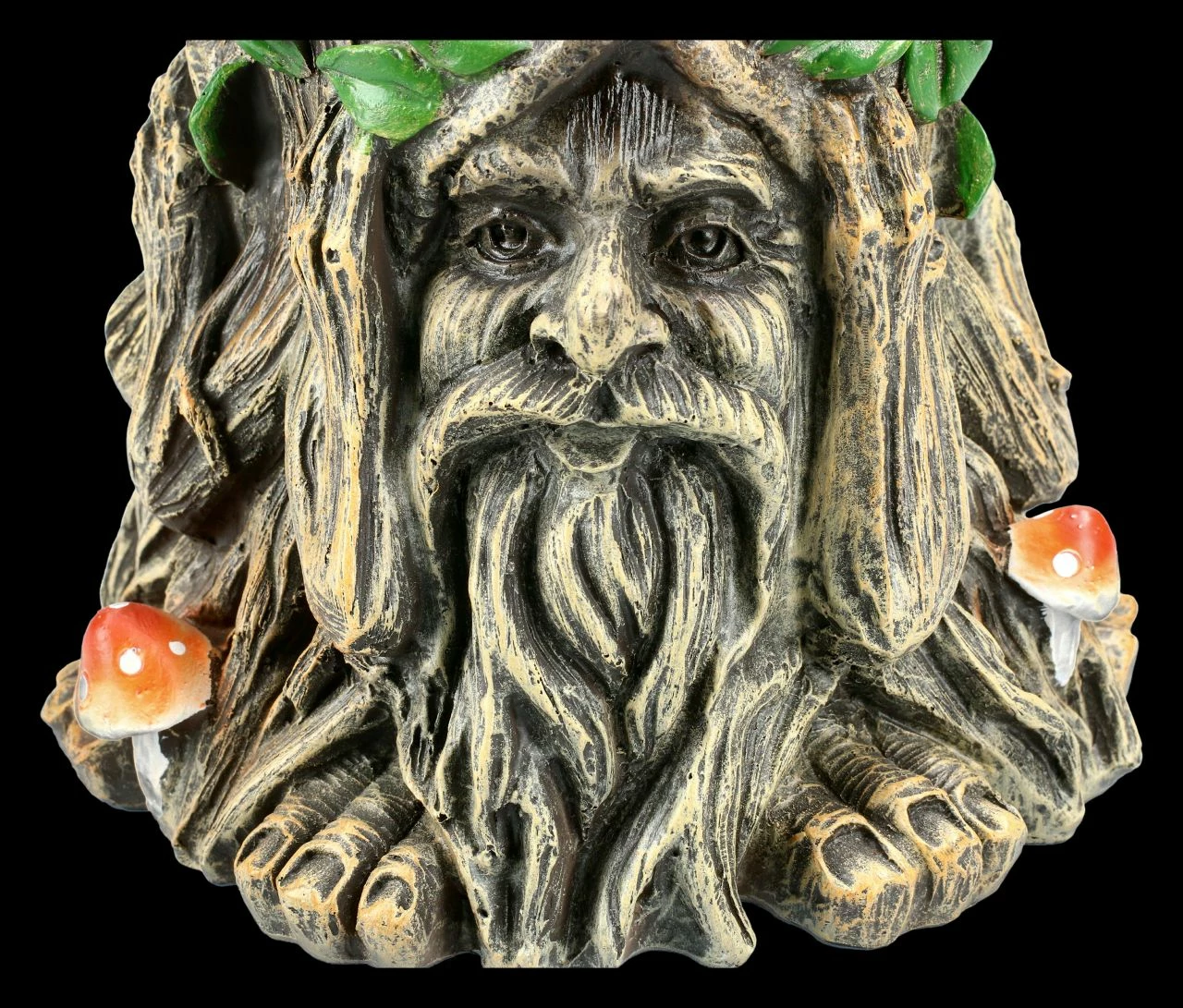 Der Greenman gilt als König der Wälder, er wahrt den Frieden und beschützt die Schwachen. Im Büro zeigt dieser Greenman mit seiner Gestik ‚Nichts Böses sehen, nichts Böses hören und nichts Böses sagen‘ die drei Merkmale einer gelungenen zwischenmenschlichen Interaktion, die besonders im Büro einen wichtigen Stellenwert haben. Mit einer Höhe von 14,7 cm, einer Breite von 17,0 cm und einer Tiefe 17,0 cm ist dieser Pflanztopf aus handbemaltem Kunststein (Polyresin) ein dekoratives und schützendes Element für Ihren Wohn- & Arbeitsbereich. Unsere Dekoration ist in der Lieferung nicht enthalten.