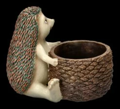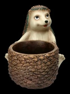Ist der Igel nicht putzig, wie er freundlich lächelnd den wie aus einem Zapfen gefertigten Pflanztopf fest in den Pfoten hält. Der niedliche Igel mit dem Pflanztopf ist aus liebevoll handbemaltem Kunststein (Polyresin) gefertigt und 16,5 cm hoch, 19 cm breit und 14,5 cm tief. Er kann ein Blumentöpfchen mit einem Durchmesser bis 9,5 cm aufnehmen und hat kein Ablaufloch. Der Übertopf mit dem sitzenden Igel ist eine tolle Deko für jede Blumenbank, aber auch ein lustiges Geschenk, wenn man Blumen überreicht.
