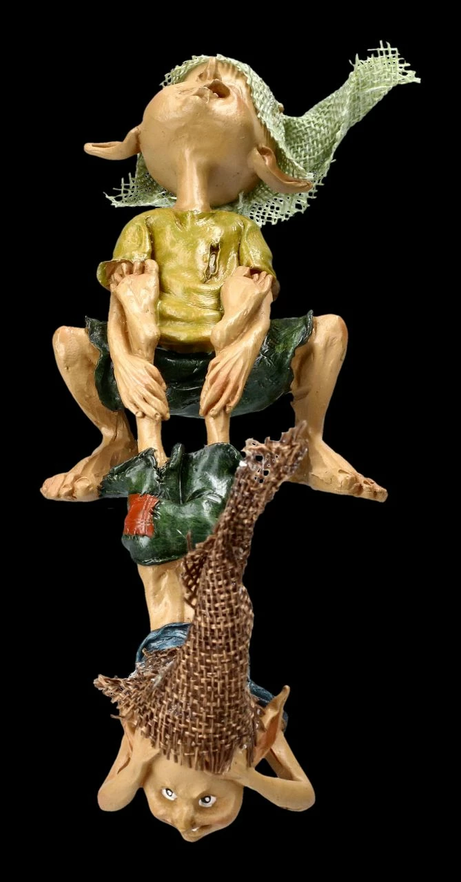 Pixie Kobolde haben nur Schabernack im Kopf. Das sieht man besonders bei den zwei frechen Kobolden. Ein Kobold hält den anderen fest, der sich von der Kante runter hängen lässt, um besser hören zu können. Welche Geheimnisse er wohl gerade hört?